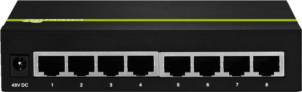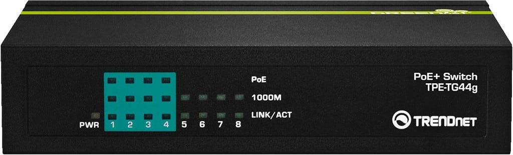 - 8 ports (RJ45) avec respectivement 10/100/1000 Mbps, dont 4 PoE-/PoE+-Ports