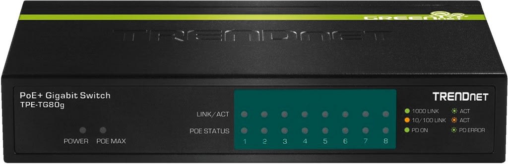 - 8 ports (RJ45) avec respectivement 10/100/1000 Mbps, dont 8 ports PoE/PoE+