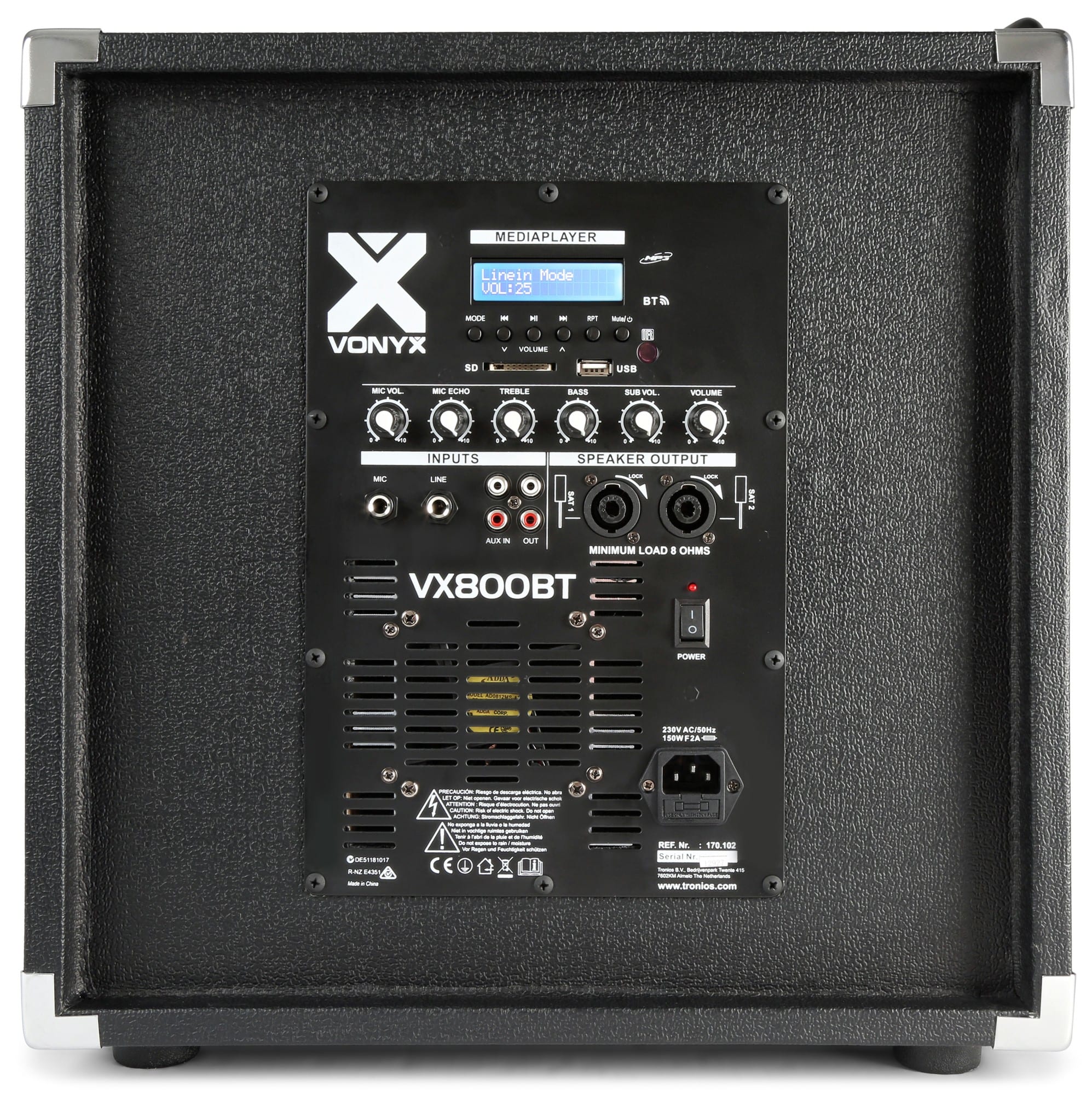 Le set d'enceintes actives VX800BT 2.1 est facile à installer et à transporter. Il comprend un subwoofer 12" et deux enceintes 8" avec un moteur dynamique 1". Le récepteur BT intégré vous permet facilement de streamer votre musique depuis votre Smartphone, ou vous pouvez utiliser le lecteur MP3 intégré avec port USB et insert SD. Ce système actif est parfait pour les DJs mobiles, les karaokés, show, présentations.