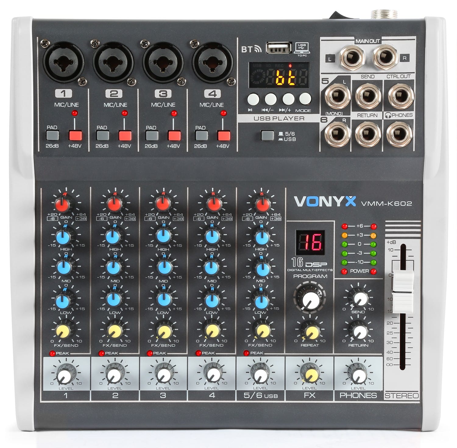 Table de mixage 6 canaux, USB/MP3 avec multi-effets - VMM-K602