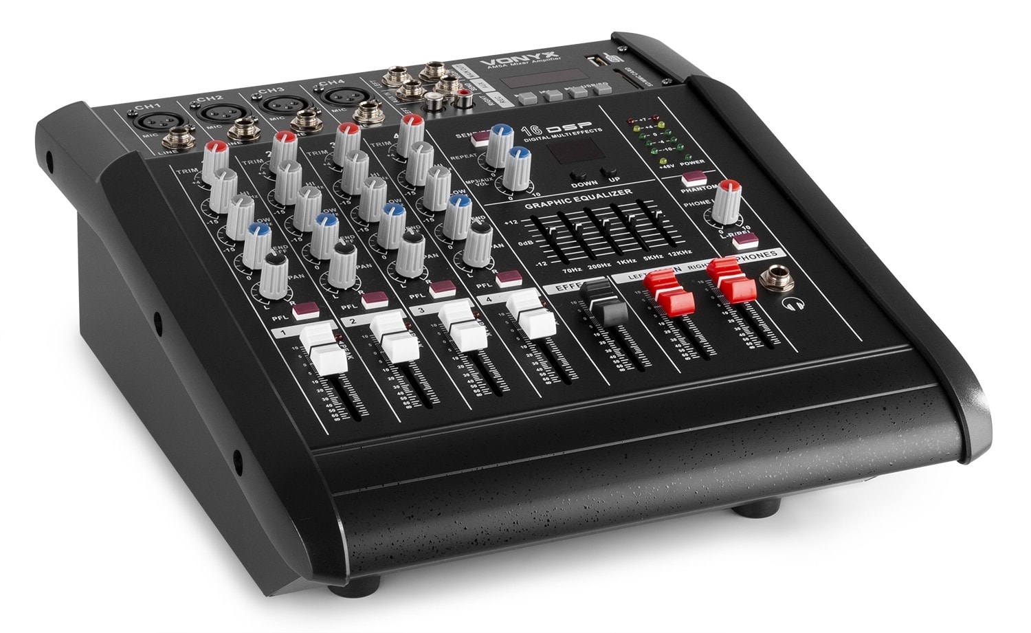 Cette table de mixage 5 canaux est dotée d'un amplificateur 2 x 500 W. Avec 4 entrées micro et ligne, elle est parfaite pour des performances en live sur scène. 16 effets digitaux permettent d'afficher de manière optimale le son. Un appareil complet !