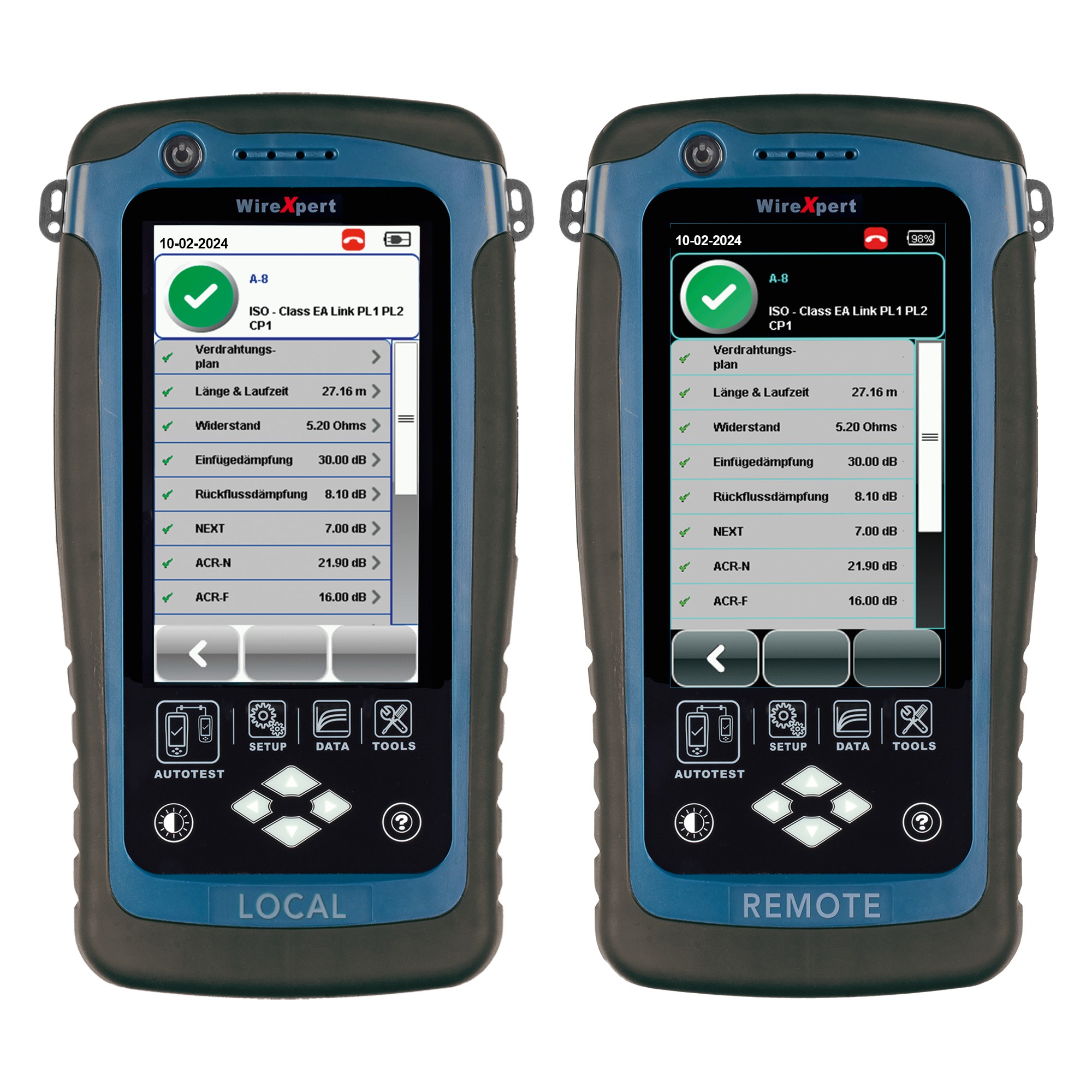 WireXpert 500 LAN Class D, E, EA/CAT 5, 6, 6A. Fréquences jusqu?à 500 MHz. Cont: 2x unités: Local&Remotet/2x Adpt PL CAT 6A/2x Adpt CL CAT 6A/2x casques/Batteries Li-Ion/2x Alim./Clé USB/Etui souple/Cert.d?étalonnage