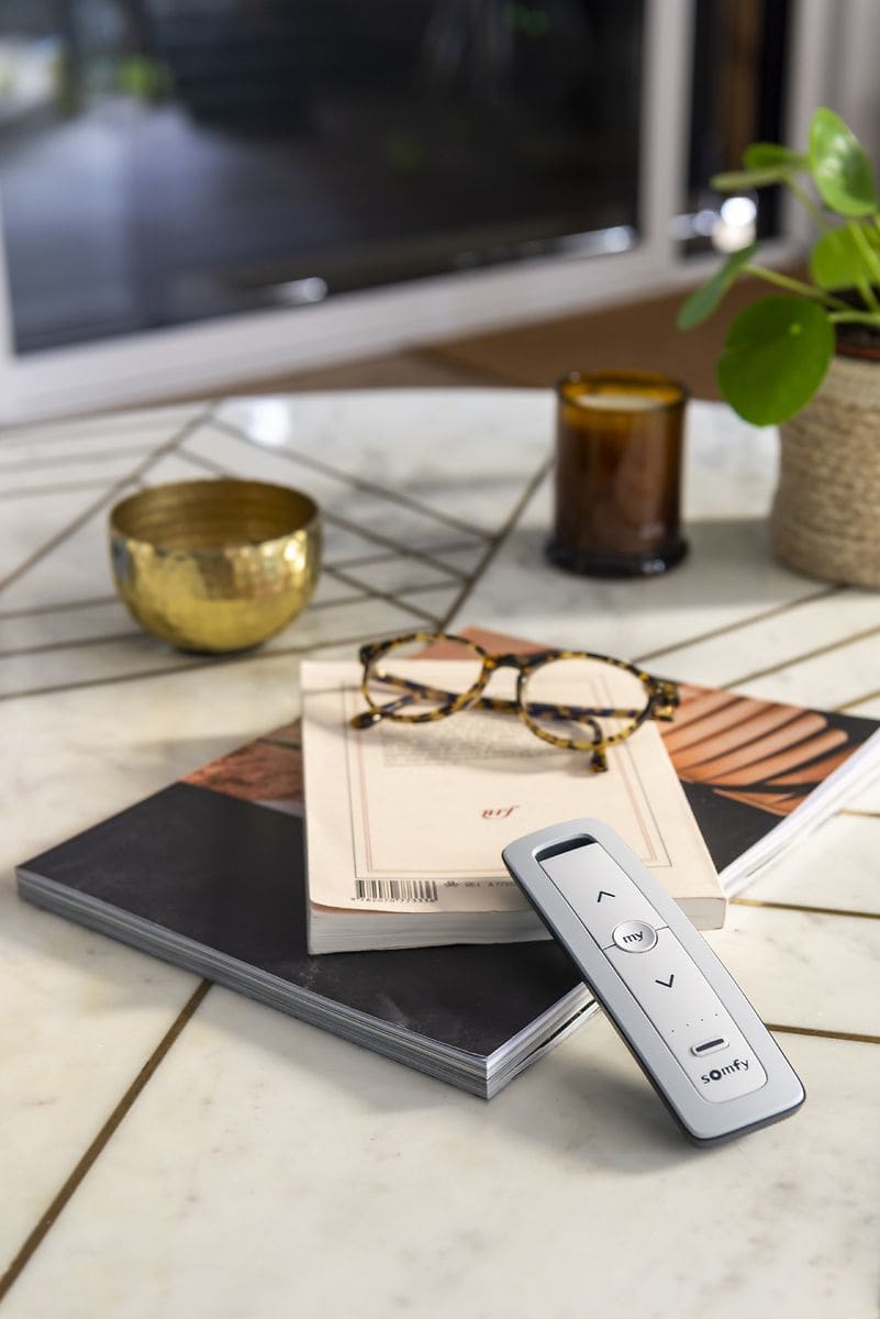 Une télécommande Rts alliant ergonomie et design pour piloter à distance l'ensemble des équipements motorisés Somfy Rts.