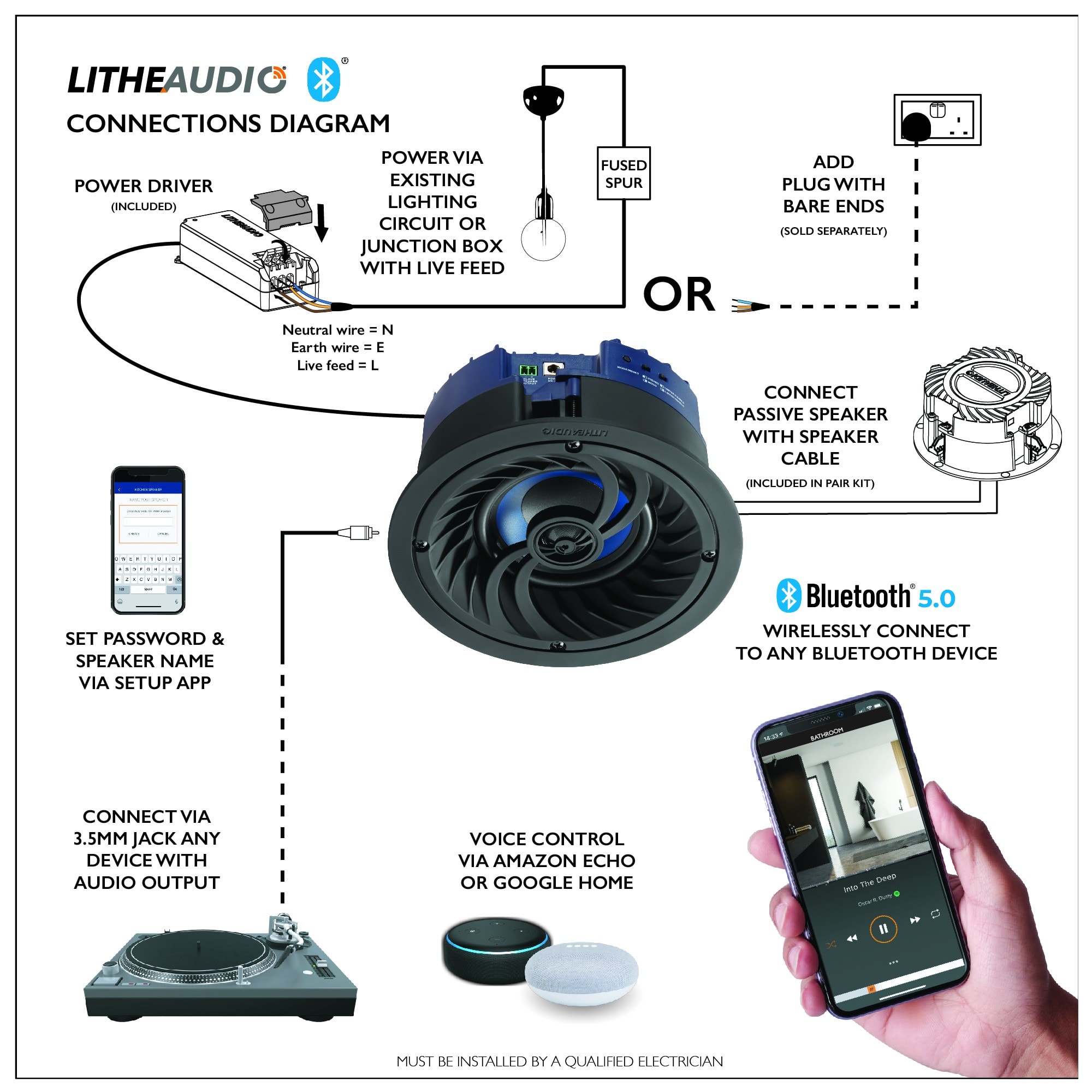 Les enceintes encastrables plafond, Bluetooth Lithe Audio 03260 offrent un woofer de 4" et un design compact, élégant et discret qui s'intègre parfaitement dans n'importe quel décor tout en offrant un son exceptionnel. Les enceintes Lithe Audio offrent de nombreuses fonctionnalités uniques : telles que le plafonnement du volume, la protection par mot de passe et l'attribution d'un nom unique à l'enceinte.
