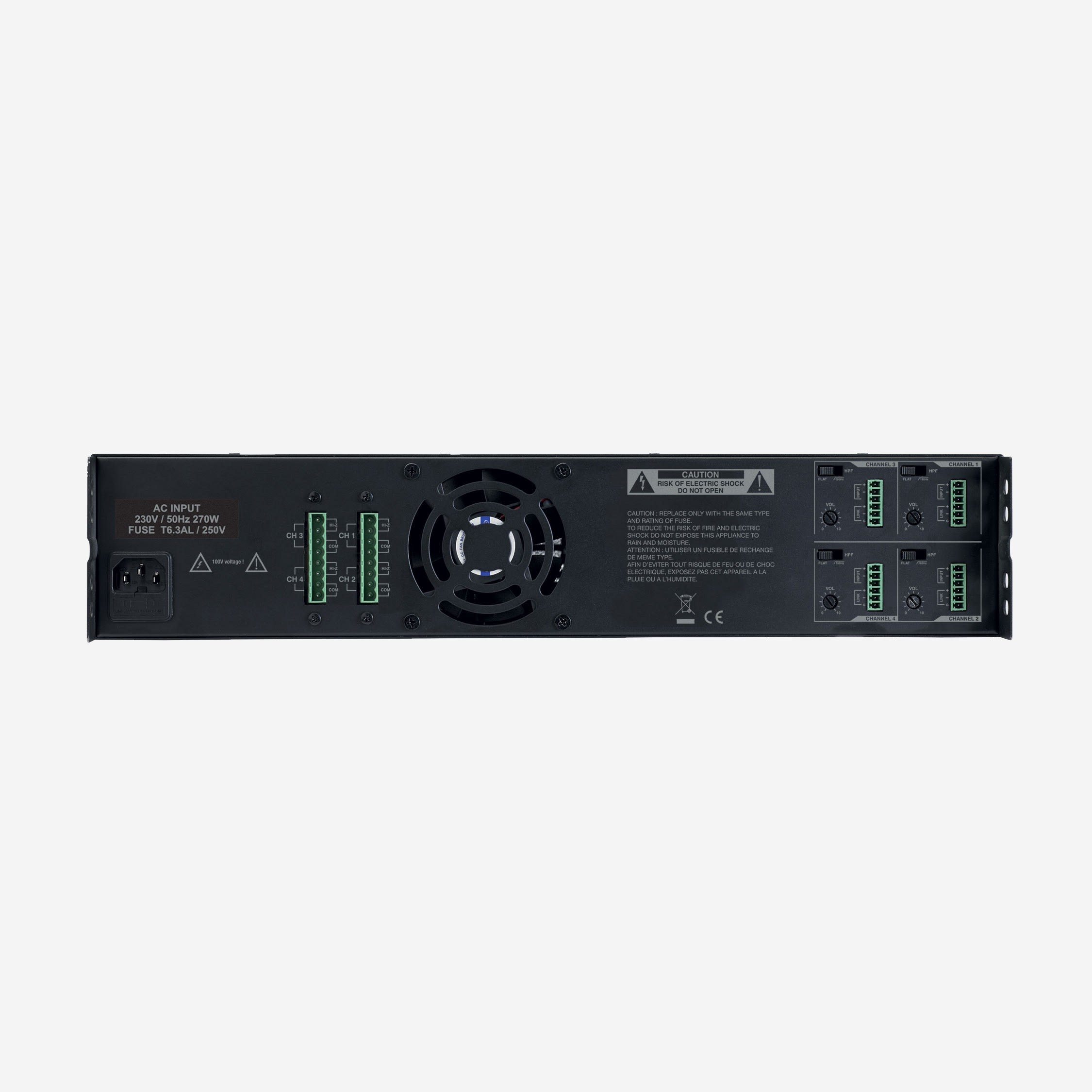 AMP4240MKII Amplificateur 4 voies 4x240W sous 100V, noir fréquence 50 Hz - 15000 Hz, 4 canaux de sortie maximale, Les filtres passe-haut permettent de limiter la présence des basses, pour une musique plus discrète, sans perte de puissance