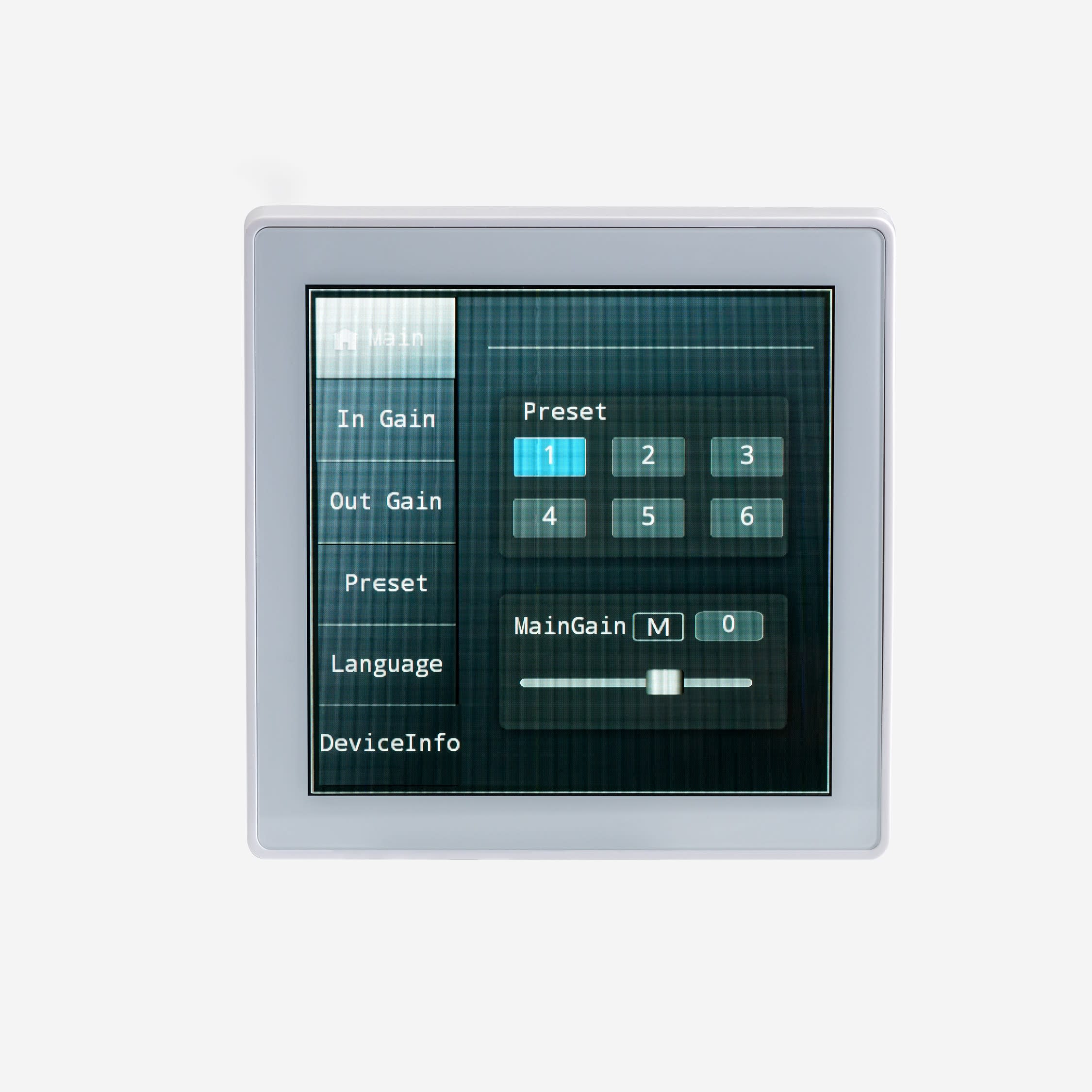DCTL, Boîtier mural de contrôle pour matrice DZONE88, 320 x 240 pixels, Contrôle du volume principal, Contrôle du volume pour chaque entrée et chaque sortie, Ecran tactile, 90mmX90mmX29mm, Interface de communication : RS485,