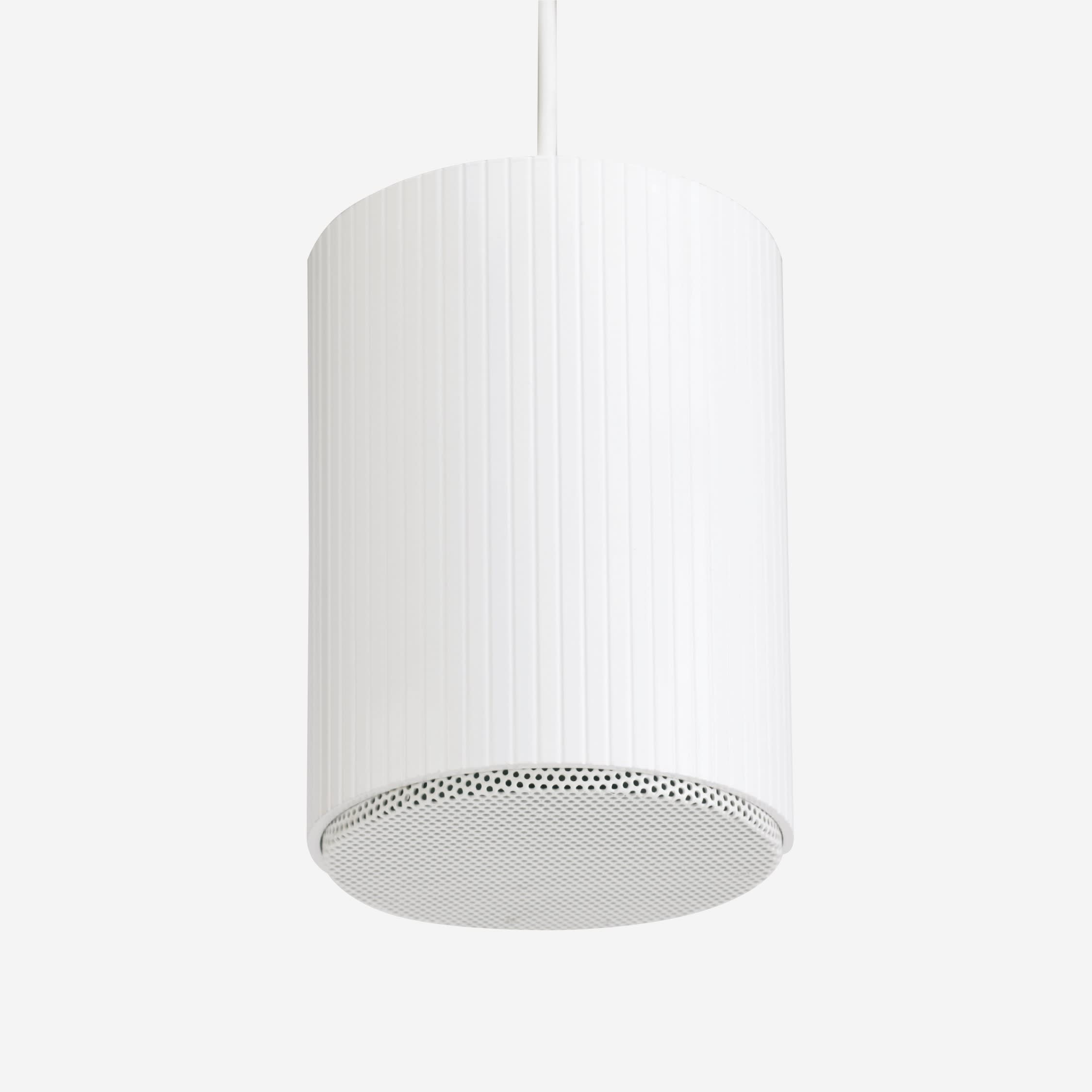 SHP510 Enceinte à suspendre équipée d?un haut-parleur de 13 cm, blanche,2,5-5-10W, 150 Hz ? 15 kHz, moins de 90 dB, Connecteur interne presse étoupe étanche, Degré de protection IP55, 138mmX205mm, Permet de sonoriser des lieux sans plafond