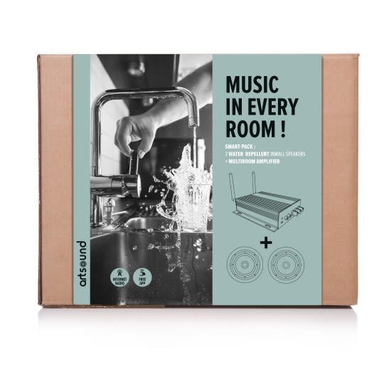 SMARTPACK/HPRO525 Amplificateur multiroom, 2x 50W, WIFI/BT, noir + paire d'enceintes HPRO525 encastrables