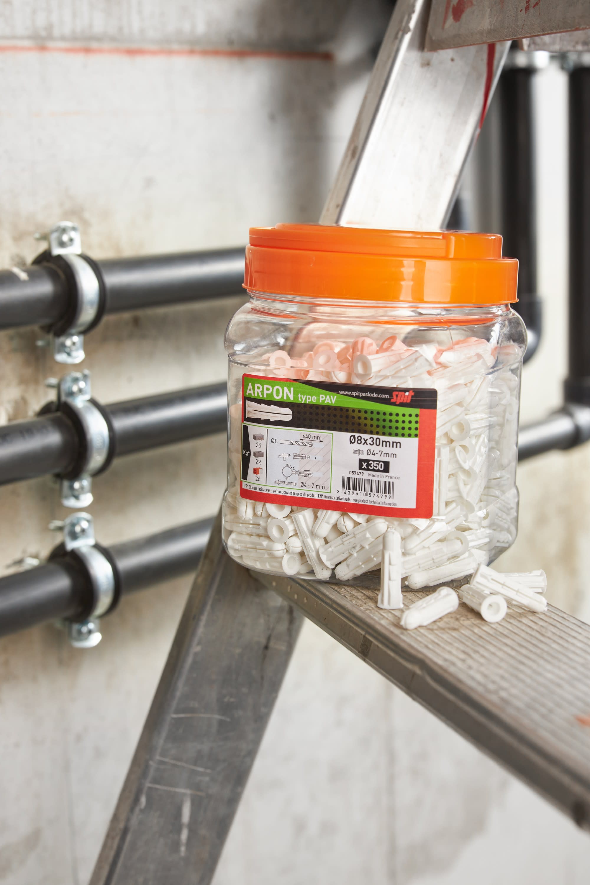 Avantages produit: Version spéciale patte à vis bois M7Pas de rotation de la cheville pendant l'installation grâce un design carré et cranté.Description produit: Cheville plastique universelle spéciale patte à visApplications: Installations de plomberie: colliers de tuyauterieDiamètre cheville: 8 mmDiamètre de perçage: 8 mmDiamètre maximal de vis: 7 mmDiamètre minimal de vis: 7 mmLongueur cheville: 32 mmProfondeur minimale de perçage: 40 mm