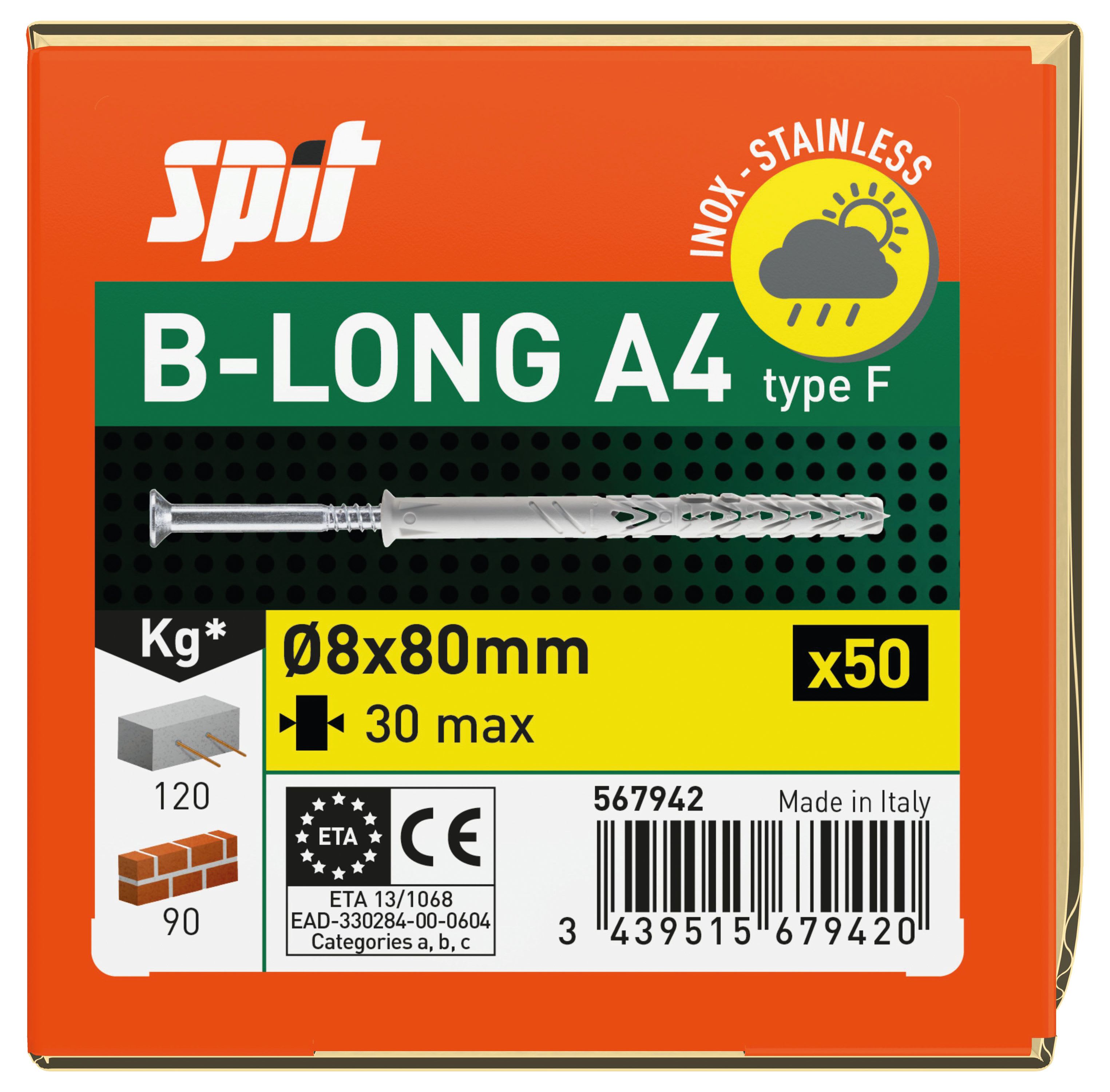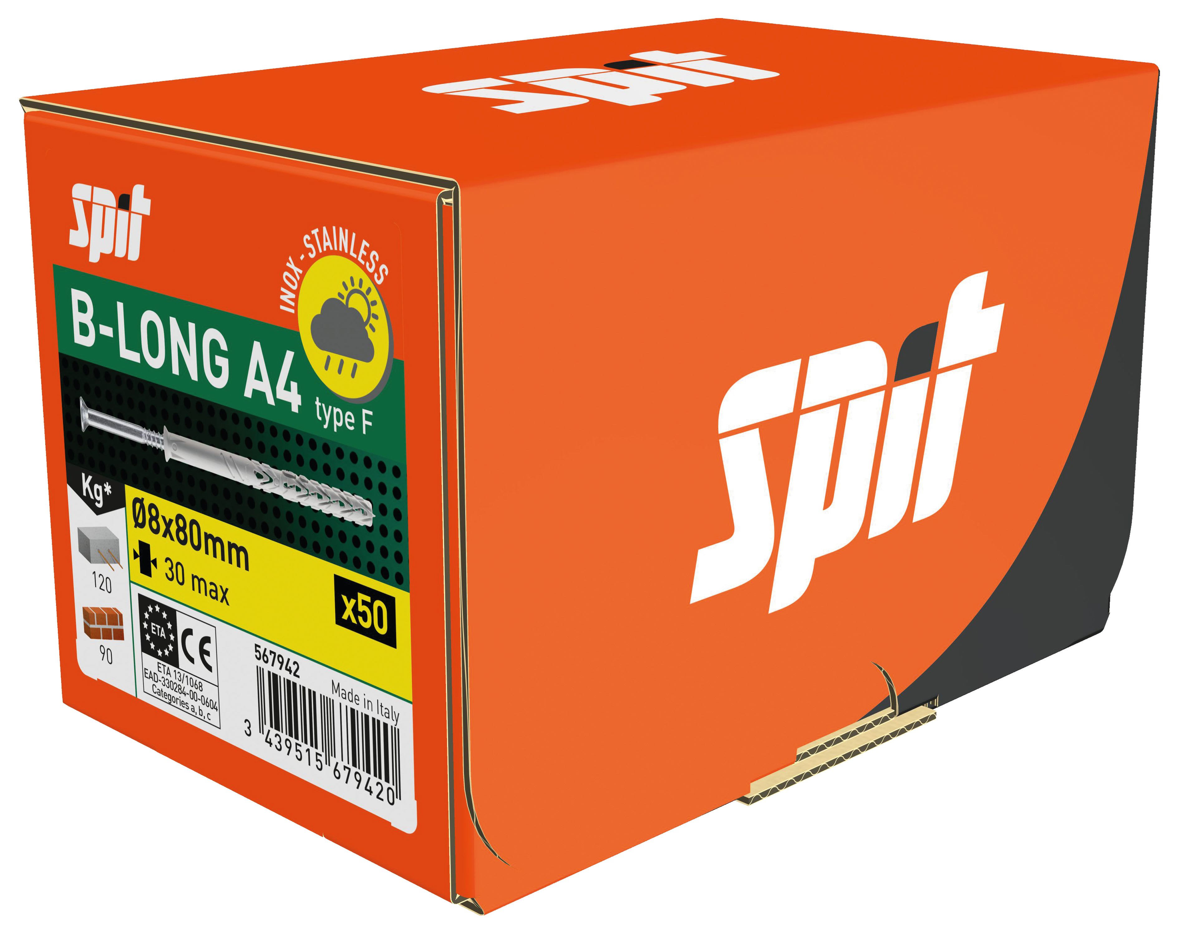 Spit - B-LONG 8x80/30F tête fraisée inox A4 - 567942
