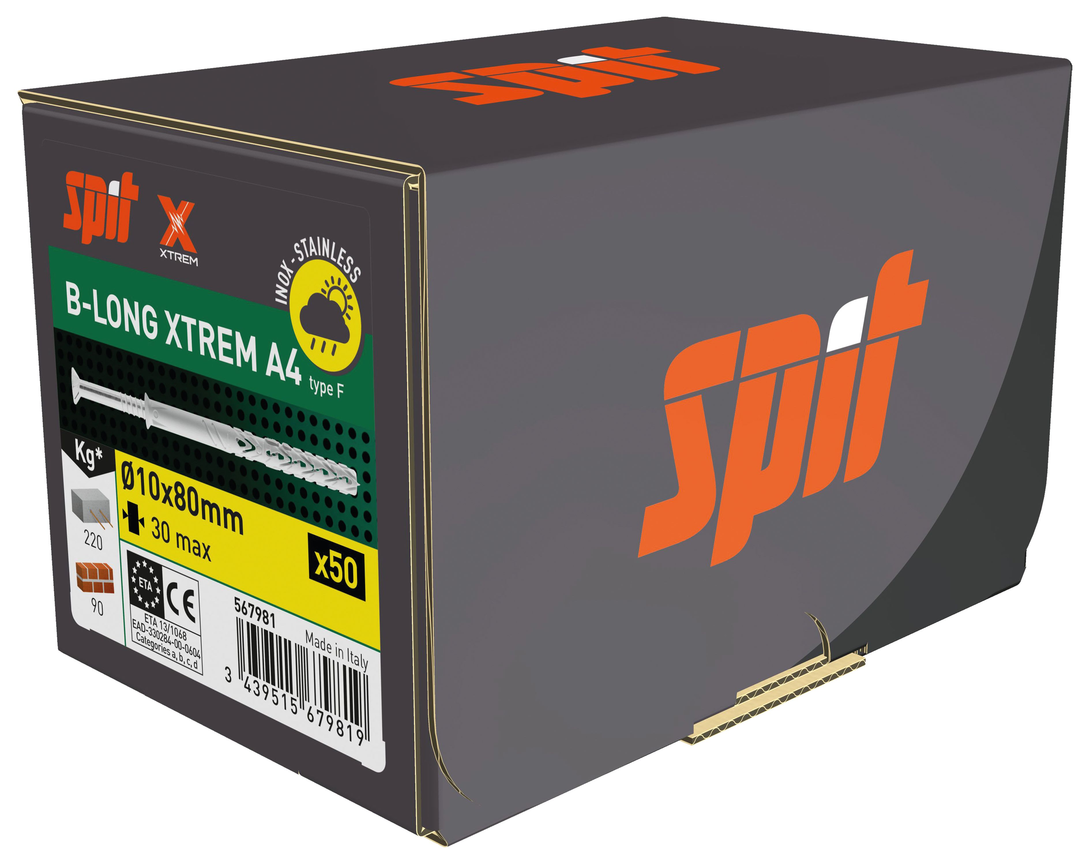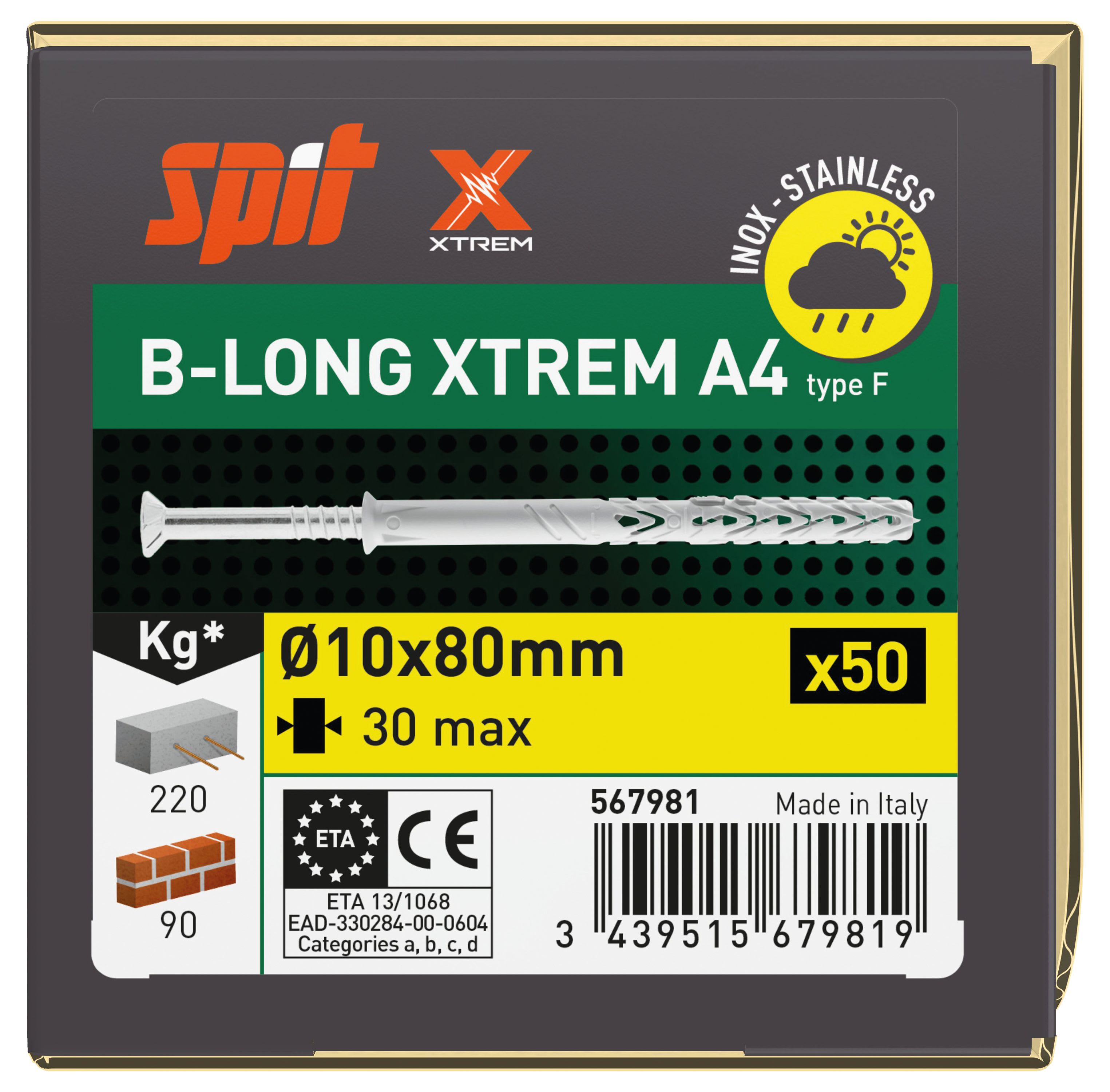 Spit - B-LONG XTREM 10X80/30F tête fraisée inox A4 - 567981