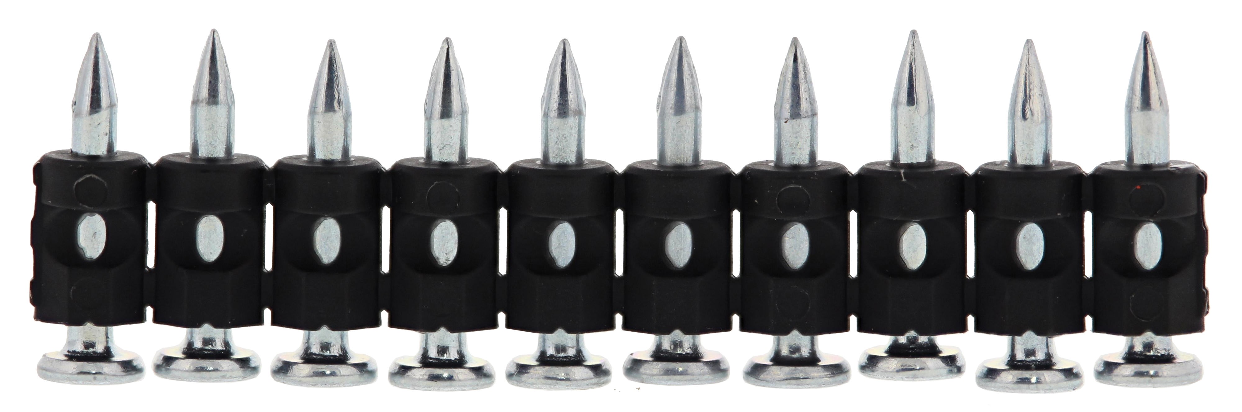 Avantages produit: Clous en bande (bande de 10) - utilisable avec les magasins 20, 30 et 50 clous des cloueurs Pulsa Livrés avec 1 cartouche de gazClous acier avec traitement anti-corrosionDisponible en différentes longueurs, de 20 à 35 mm pour de multiples applicationsDescription produit: Clous acier performance standard pour béton à faible duretéApplications: Plaquiste : Clouage de rails au sol, cornière de riveÉlectricien : Clouage au sol de crochets plastiques, tubes plastiques, câblesAutonomie cartouche de gaz: 500 tirsDiamètre de la tête: 6.3 mmDiamètre de tige: 2.6 mmDiamètre du clou: 2.6 mmLongueur de fixation (clou/agrafe/pointe): 20 mmNombre de clou par bande/rouleaux: 10 piècesPas de filetage: 6.87 mm