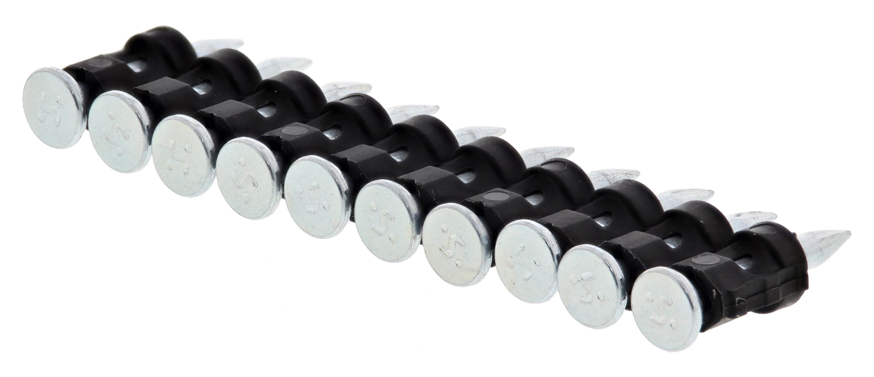 Avantages produit: Clous en bande (bande de 10) - utilisable avec les magasins 20, 30 et 50 clous des cloueurs Pulsa Livrés avec 1 cartouche de gazClous acier avec traitement anti-corrosionDisponible en différentes longueurs, de 20 à 35 mm pour de multiples applicationsDescription produit: Clous acier performance standard pour béton à faible duretéApplications: Plaquiste : Clouage de rails au sol, cornière de riveÉlectricien : Clouage au sol de crochets plastiques, tubes plastiques, câblesAutonomie cartouche de gaz: 500 tirsDiamètre de la tête: 6.3 mmDiamètre nominal: 2.6 mmLongueur de fixation (clou/agrafe/pointe): 35 mmNombre de clou par bande/rouleaux: 10 piècesPas de filetage: 6.87 mm