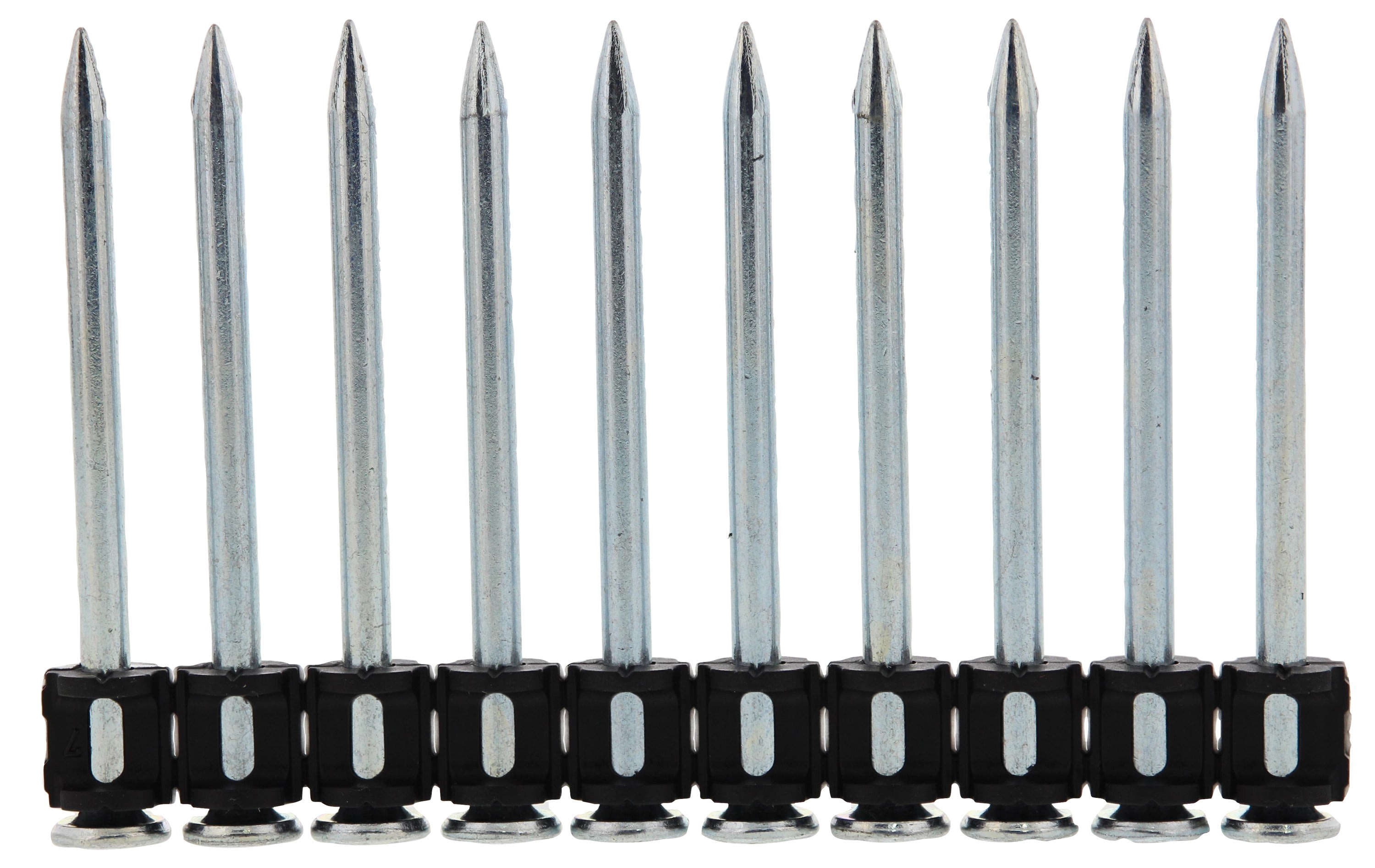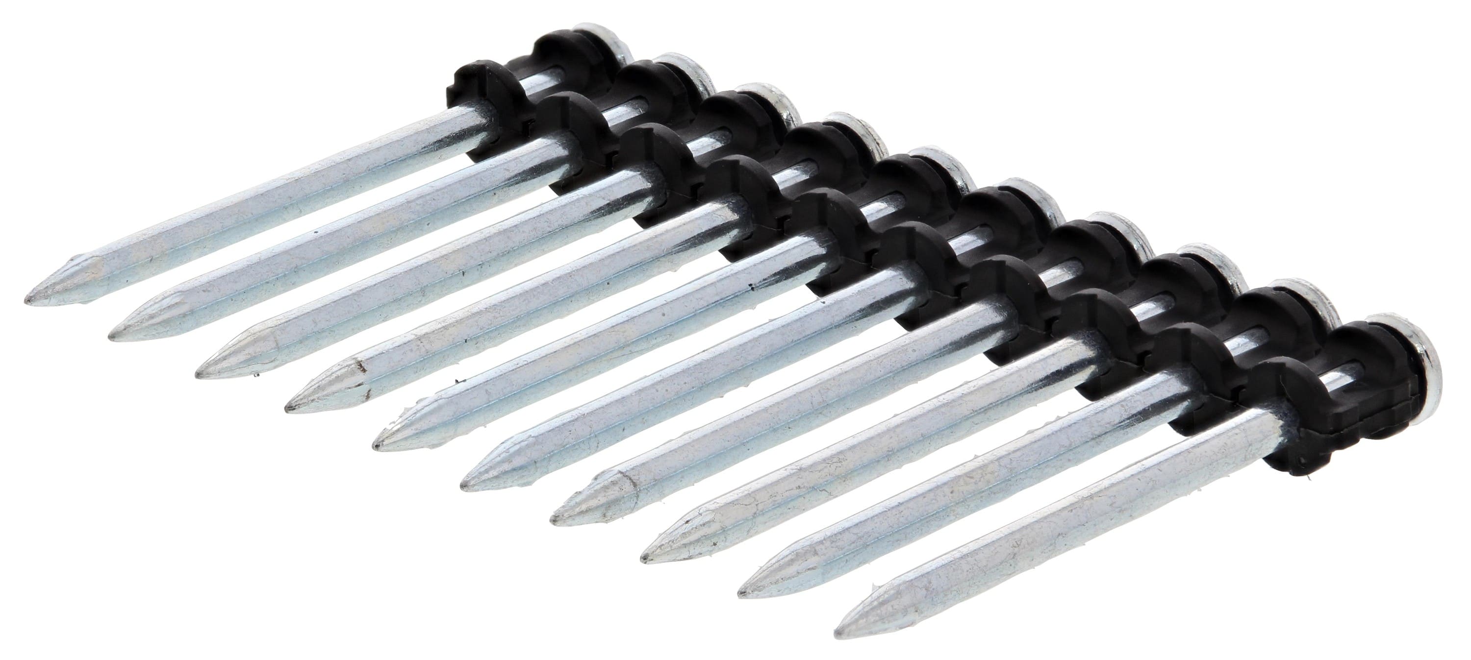 Description produit: Clou pour bétonDiamètre de la tête: 8.8 mmDiamètre nominal: 3.65 mmLongueur de fixation (clou/agrafe/pointe): 60 mmNombre de clou par bande/rouleaux: 10 piècesPas de filetage: 9.5 mm