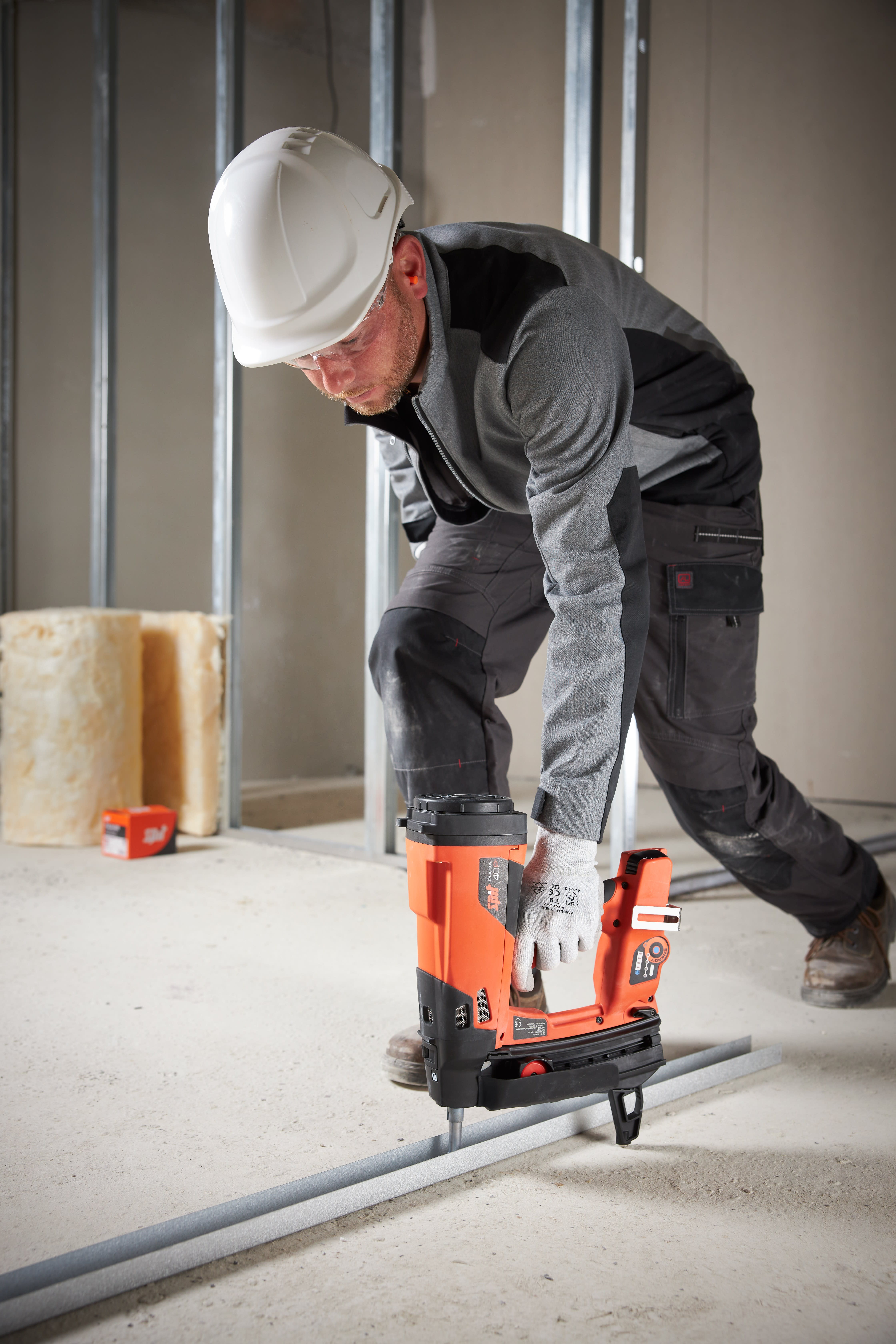 Avantages produit: Gain de temps : jusqu'à 6 fois plus rapide que le chevillageSans contrainte : jusqu'à 1000m de rails installés avec une charge de batterieMoins de fatigue : léger, profilé et équilibré, le Pulsa 40P+ facilite le travail en toute situation (plafond, usage intensif...)Confort et sécurité : moins de poussières et moins de vibrations comparé au perçagePas d'arrêt sur les chantiers: une technologie fiable, performante et éprouvée depuis plus de 30 ansPar tous les temps : de -15°C à +49°CDescription produit: Cloueur autonome multi-matériaux spécial plaquistesApplications: Rails métalliquesSemelles boisRails OptimaCornières de riveSuspentes faux plafonds (clous CW6)Clouage de lattis métalliques ou d'éléments d'étanchéité avec rondelle ø25 mmAngle d'inclinaison de l'assemblage: 0 °Autonomie cartouche de gaz: 500 tirsCadence maximale de tir (tirs/Sec): 2 fixation(s)Cadence maximale de tir (tirs/heure): 1000 fixation(s)Capacité batterie: 2.5 AhCapacité magasin grande contenance: 50 fixation(s)Capacité magasin: 20 fixation(s)Effort de mise en appui: 4.5 KgNiveau de pression acoustique (EN 12549) LpA: 96 dB(A)Niveau sonore (EN 12549) Lwa: 109 dB(A)Nombre de fixation par recharge batterie: 3500 tirsPic de pression acoustique (EN 12549) LpCpeak: 135 dB(C)Plage de diamètre fixation: 2,6-3,0 mmPoids (Kg) (Selon norme EPTA): 3.7 KgPoids de la batterie: 0.076 KgPuissance batterie: 9 W/hPuissance: 100 JQuantité de batterie par kit: 1 piècesTemps de charge batterie: 105 min.Température de fonctionnement: -15°C...+49 °CTempérature maximale de fonctionnement: 49 °CTempérature minimale de fonctionnement: -15 °CVibration 3 axes (EN ISO 8662-11) ahv: 4.4 m/s2
