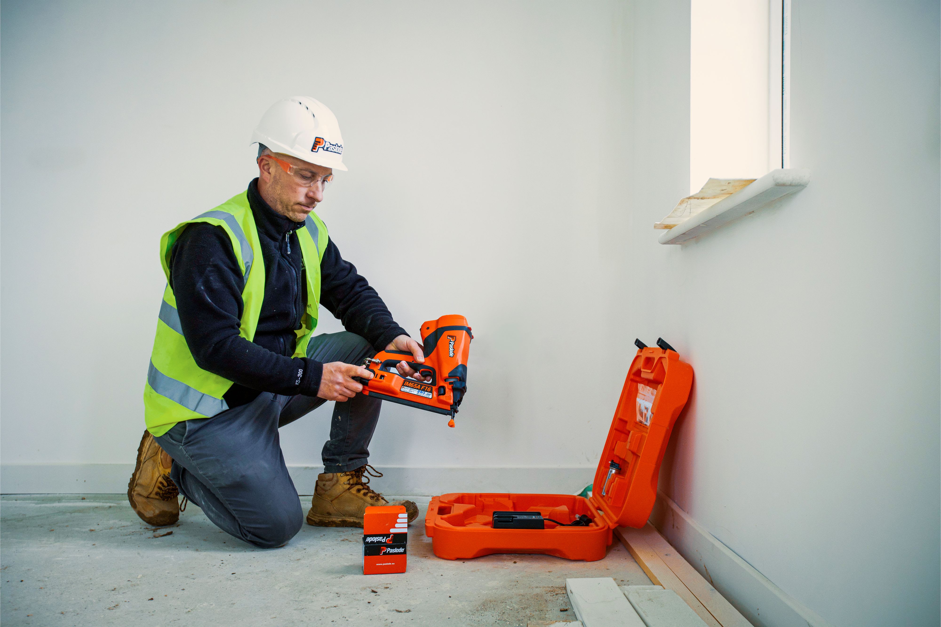 Cloueur de finition à gaz premium, avec technologie au lithium et magasin incliné