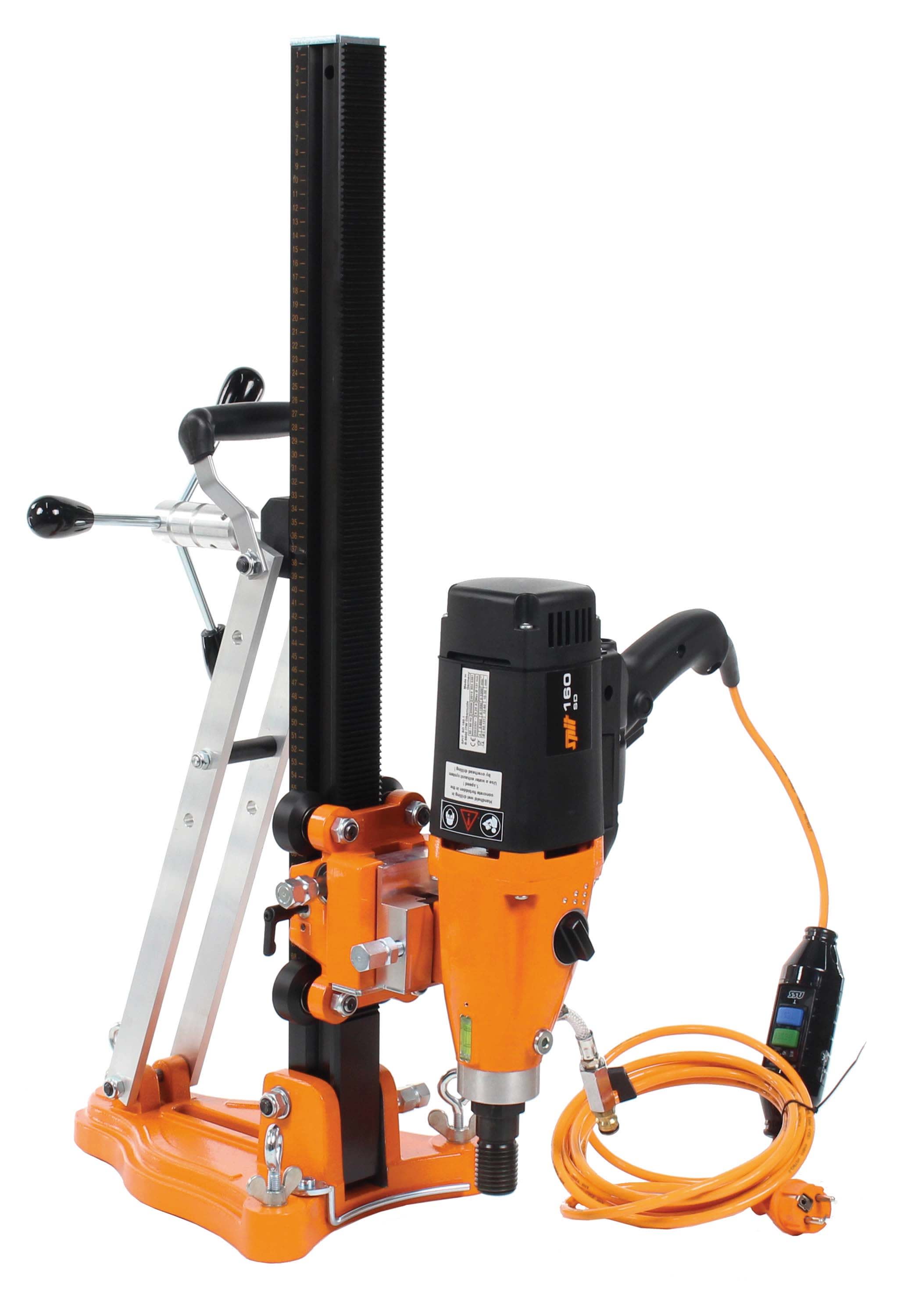 Avantages produit: Livré en coffre plastique avec rouesMoteur d'une puissance de 2 000 W pour le perçage dans le béton arméDouble connexion 1/2" et 1 1/4"3 vitesses pour différents diamètres de forageUtilisation manuelle ou à l'aide d'un bâti de forage2 niveaux à bulles intégrés pour un forage parfaitement horizontal / vertical Voyant lumineux pour réguler la pression de forageDescription produit: Moteur et bâti pour forage à sec ou à eau jusqu'au diamètre 160 mmDiamètre maximal forage à eau: 161 mmDiamètre maximal forage à sec: 181 mmDiamètre maximal recommandé à eau (à la main): 81 mmDiamètre minimal forage à eau: 14 mmDiamètre minimal à sec: 31 mmDiamètre recommandé à eau: 131 mmDiamètre recommandé à sec: 132 mmPuissance (watt): 2000 WVibration (EN 60745) marge d'erreur k=1: 2.5 m/s2Vitesse de rotation à vide (position 1): 660 trs/minVitesse de rotation à vide (position 2): 1550 trs/minVitesse de rotation à vide (position 3): 3300 trs/min