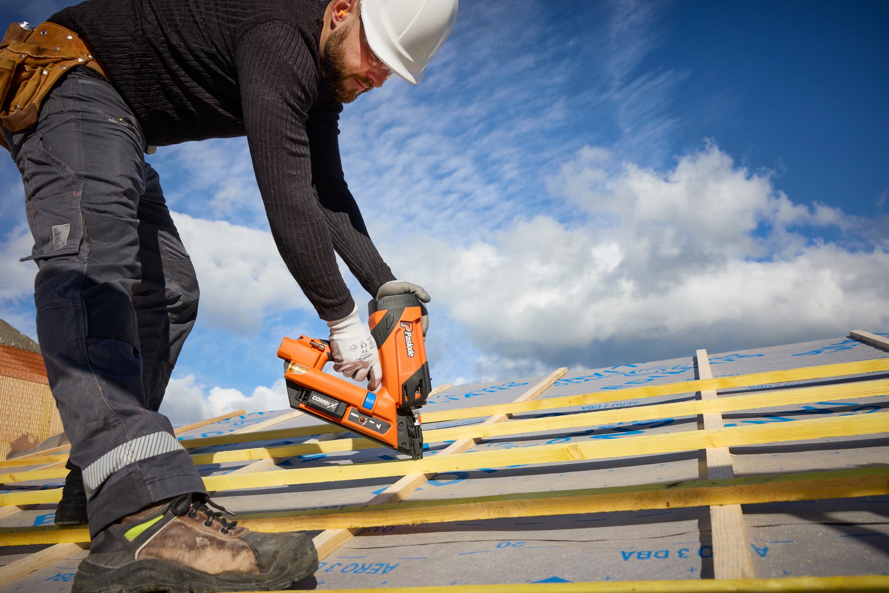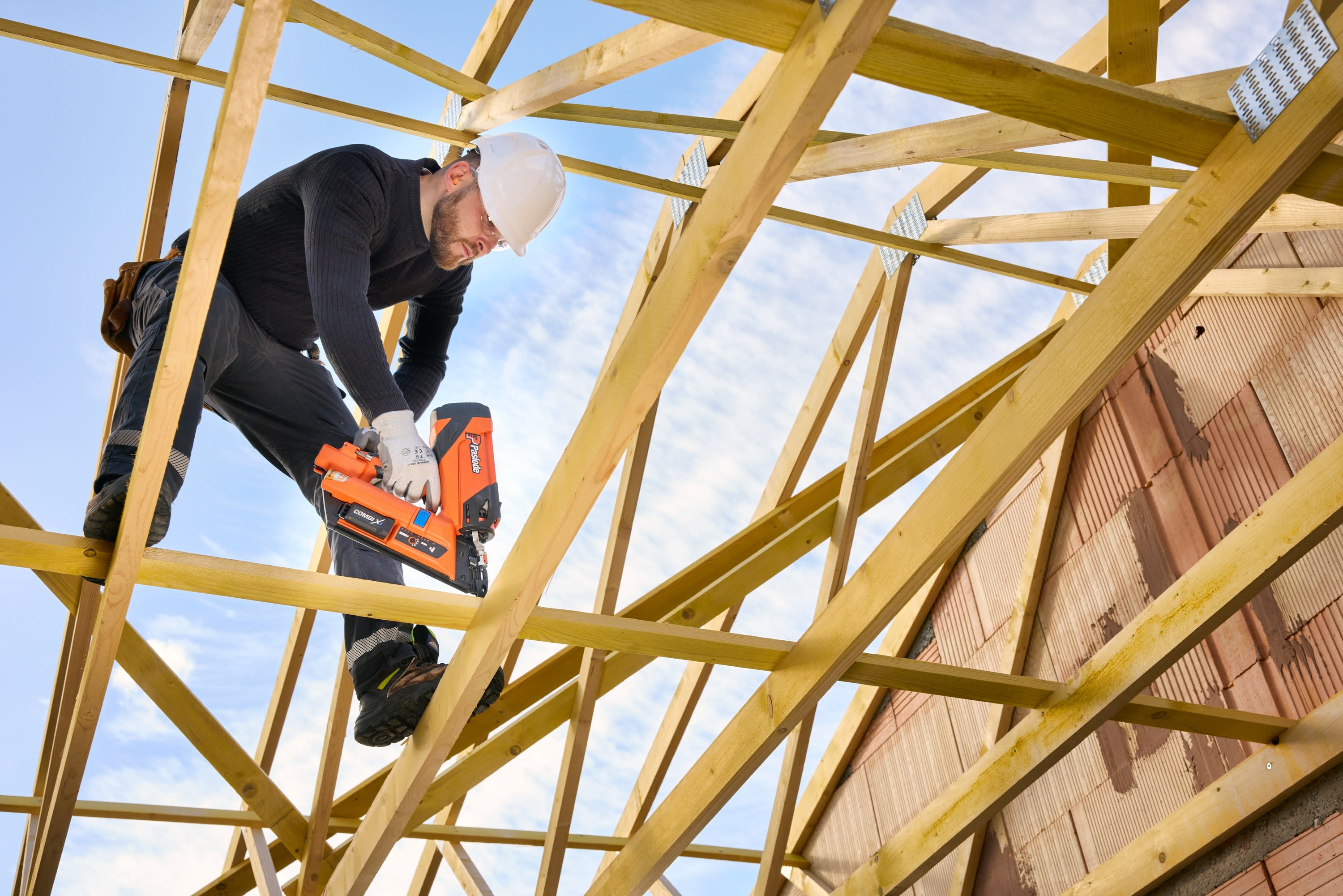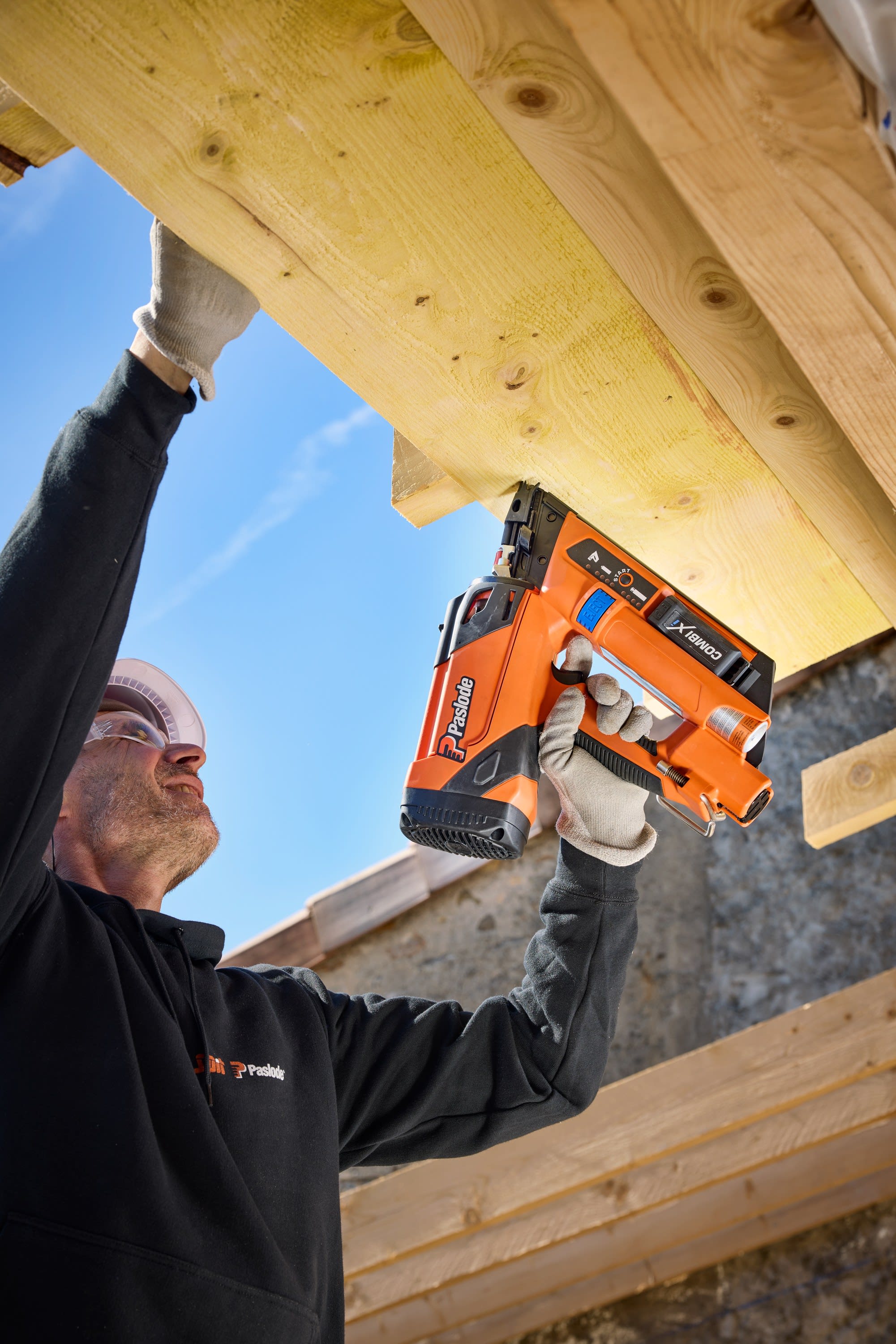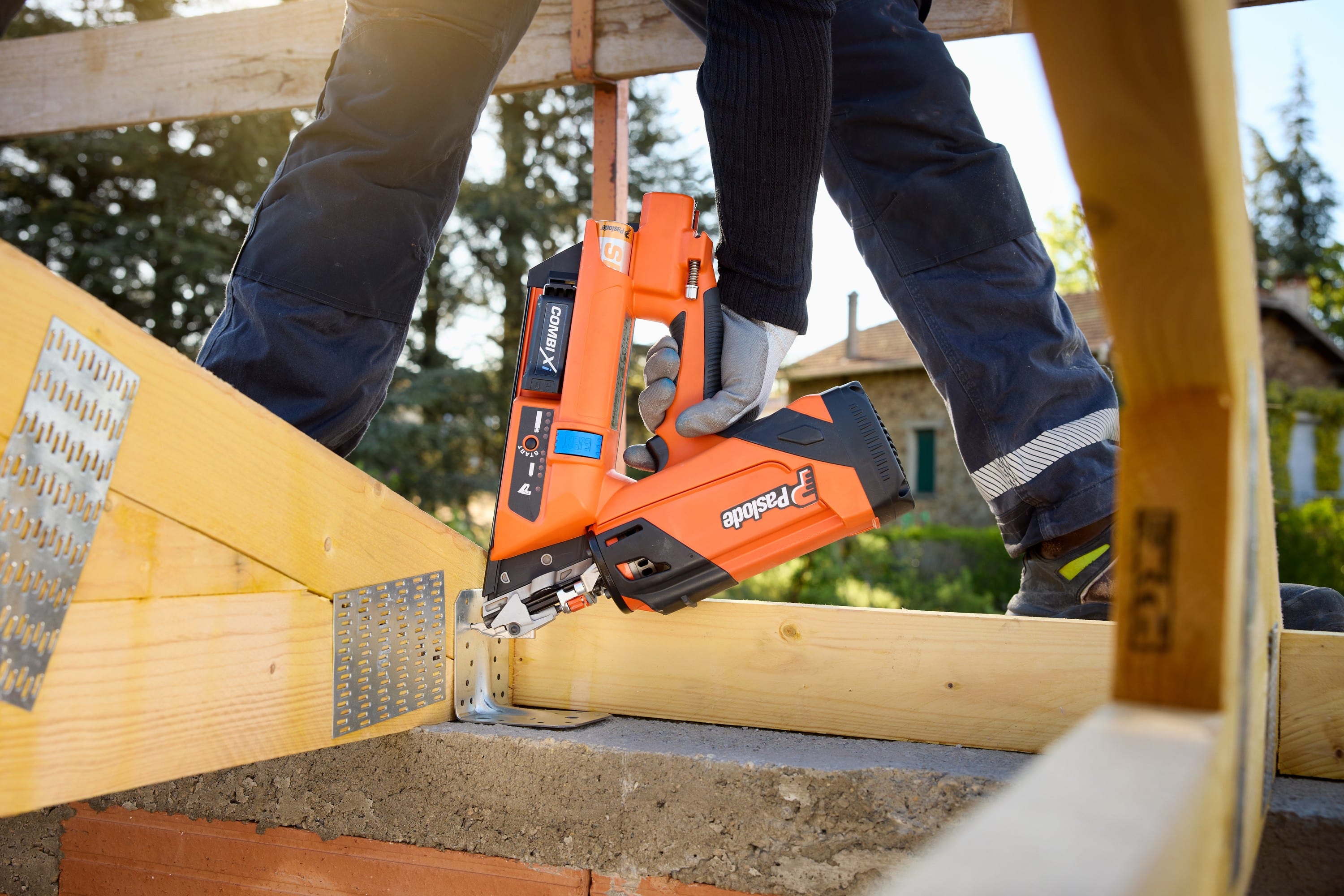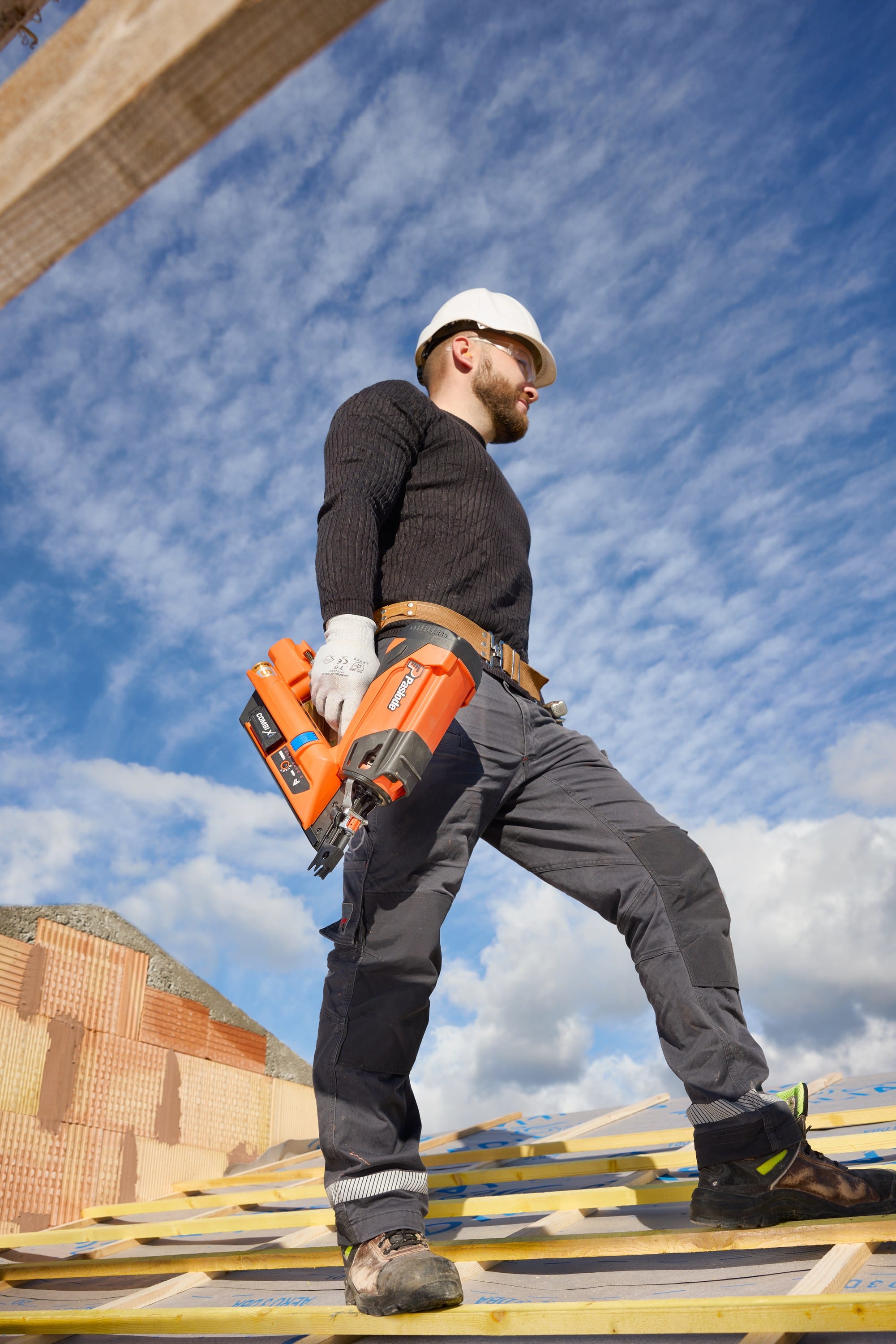 Avantages produit: 1 seul outil pour les applications de structure et la pose occasionnelle de connecteurs métalliquesInvestissez dans 1 seul outil pour vos applications intensives de structure et la pose de connecteurs métalliques (jusqu’à 6000 clous par an)Gain de temps : Jusqu’à 6 fois plus rapide que le clouage manuel et le vissageConçu pour votre confort : outil léger et bien équilibréSécurité renforcée : palpeur de centrage rapide et clous crantés en acier trempé pour éviter les ricochetsPerformant par tous les temps, de -15°C à +49°CPas d'arrêt sur les chantiers : une technologie fiable et éprouvée depuis plus de 30 ansPas de recharge quotidienne : Jusqu’à 5 toits avec 1 charge de batterie100% autonome : pas de compresseur à installer, pas de câbles et de tuyaux d'air sur le chantierMoins de mallette à transporter et à stockerDescription produit: Cloueur autonome de structure sur bois avec palpeur et magasin pour la pose de connecteurs métalliquesApplications: Applications de structure :Charpente/Ossature boisAssemblage de fermettesContreventementLiteauxVoligesPanneaux de couverturePose de montantsLames de plancherPanneauxTerrasse boisCoffrageConnecteurs métalliques avec trous de 5 mm :Equerres de fermetteSabots de charpenteEquerres d'assemblageConnecteurs d'anglePlaques de connexionFeuillards de contreventementPlage de diamètre fixation: 2,8 - 3,1 - 4 mmTempérature maximale de fonctionnement: 49 °CTempérature minimale de fonctionnement: -15 °C
