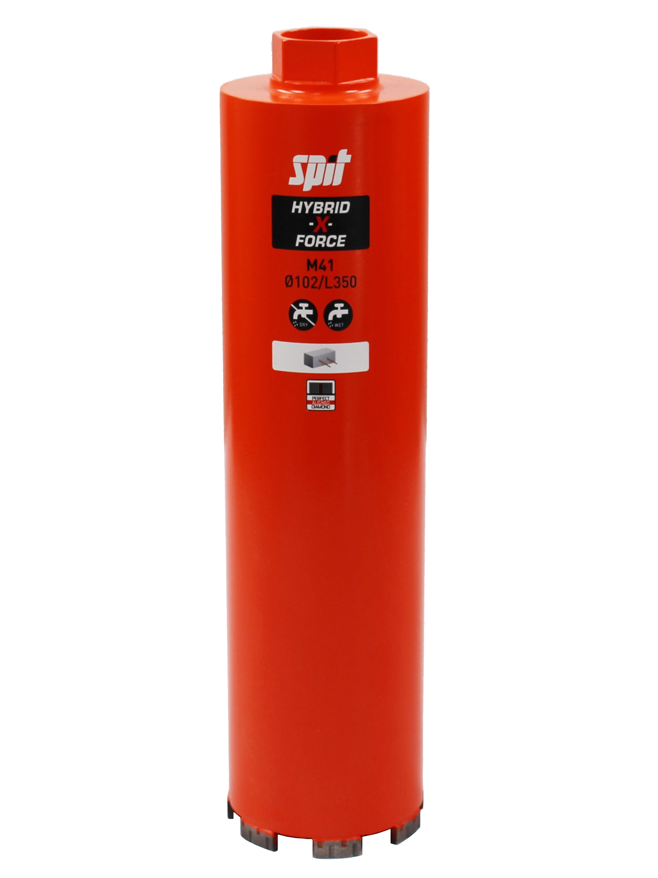Avantages produit: Couronne plus durable grâce aux diamants parfaitement alignés et positionnés (PAD). Chaque diamant du segment est utilisé à 100%.Vitesse de coupe constante : un apport constant de diamants grâce à la technologie X-force.Plus longue durée de vie de votre machine : forage plus fluide avec moins de vibrationsProtection maximale contre la perte de segment : soudure laser haute résistance entre le segment et le tube.Permet le forage à sec dans le béton arméForage à sec sans percussion : travaillez plus confortablement avec moins de vibrationsExtraction optimale des poussières avec l'utilisation d'un accessoire adaptéVitesse élevée lors du forage à sec grâce au refroidissement optimal de la couronneUtilisable même en cas de froid extrêmeDescription produit: Couronne diamant hybride M41 pour forage à eau et à secDiamètre: 82 mmLongueur: 350 mm