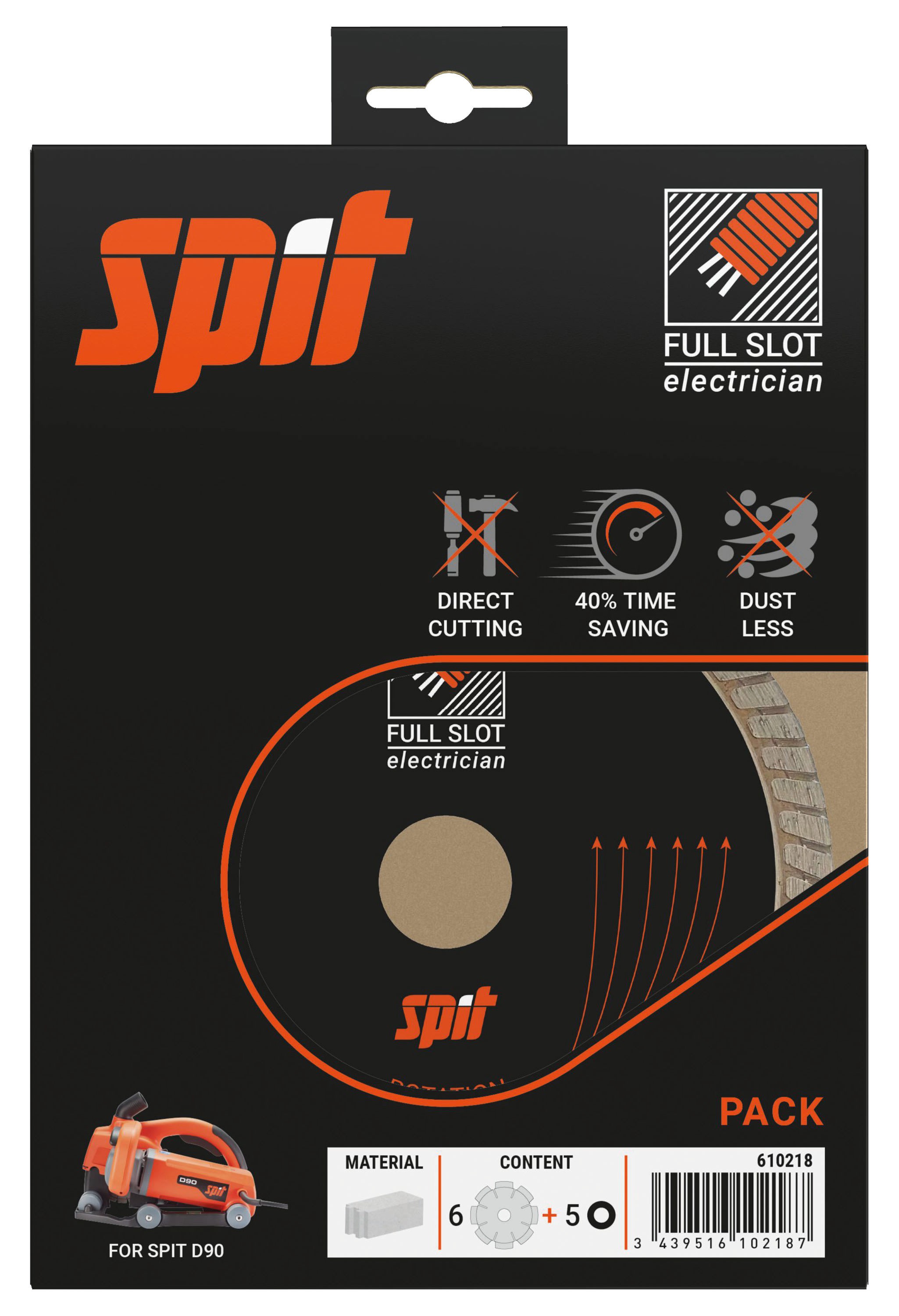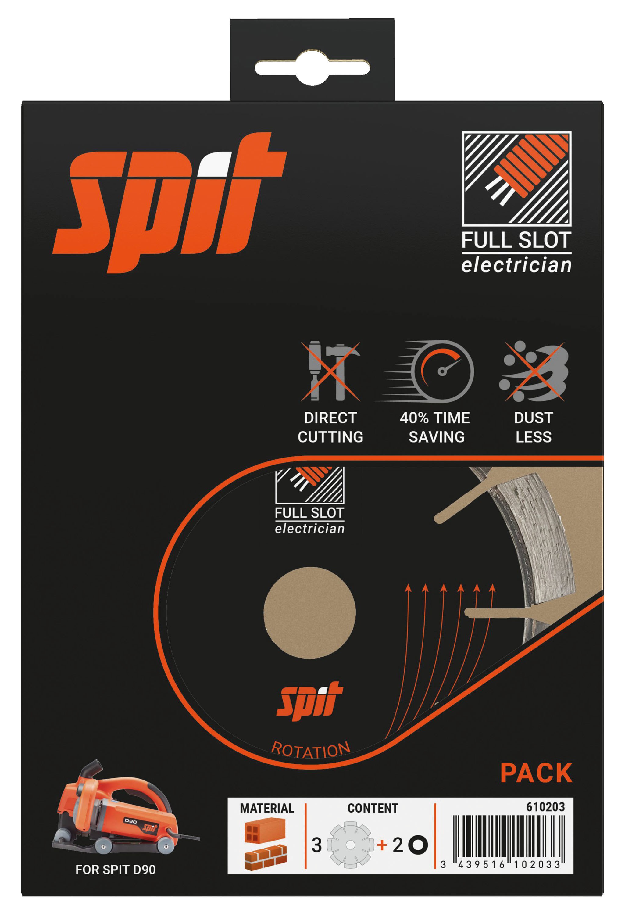 Avantages produit: Gain de temps : plus de besoin de piquer la saignée, elle retirée entièrement pendant le rainurage.Propreté : certifiée DUST FREE (sans poussières) associée à l'aspirateur SPIT AC 1630 P ou PM ou PH.Compatibilité : fonctionne avec la rainureuse Spit D90 et son système de montage rapide Diaquick.Performance : facilite l’encastrement des gaines de diamètre 16mm et 20mm, ou plus ajoutant des disques.Description produit: Disques diamant haute durabilité et haute vitesse, pour découpe directe, utilisable avec la rainureuse D90Applications: Pour encastrement de câble 10mm, de gaines 16mm, 20mm ou plus.Au mur et au sol, dans le neuf et la rénovation. Profondeur max 37mm. Largeur max 21mm. Largeur supplémentaire avec plus de diques.