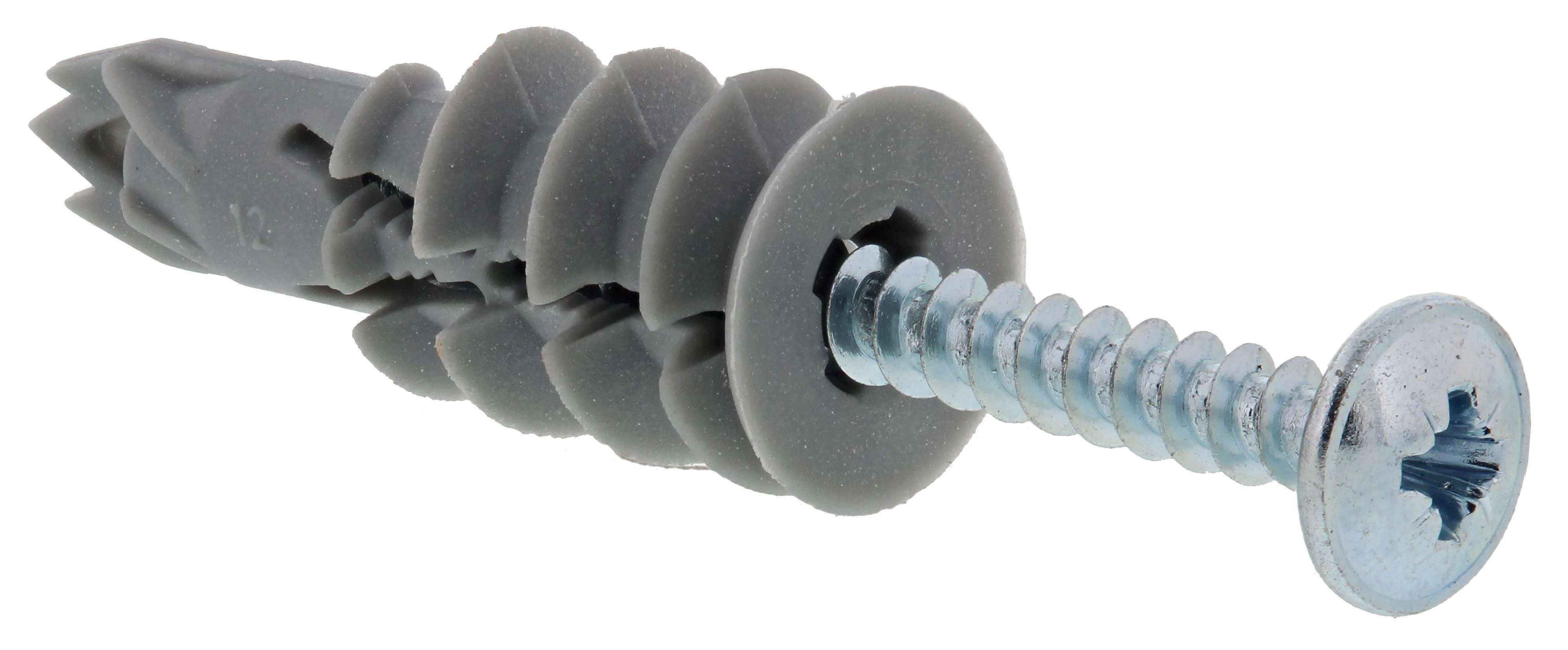 Avantages produit: Pas de pré-perçage : gain de temps et facilité de poseCheville à expansion, en polyamide renforcé, offrant des performances élevéesInstallation à l’aide d’un tournevis ou d’une visseuseIdéale tout type de plaque de plâtreDescription produit: Cheville autoforeuse pour plaque de plâtre - tête plate ép. 10 mmApplications: GoulottesBoitiers de dérivationInterrupteursBlocs alarme incendieBlocs secoursEclairageDiamètre cheville: 13 mmDiamètre maximal de vis: 4.5 mmDiamètre minimal de vis: 4.5 mmEpaisseur maximale pièce à fixer: 10 mmEpaisseur minimale du matériau de base: 10 mmLongueur cheville (mm): 38 mmLongueur minimale du filetage cheville: 45 mm