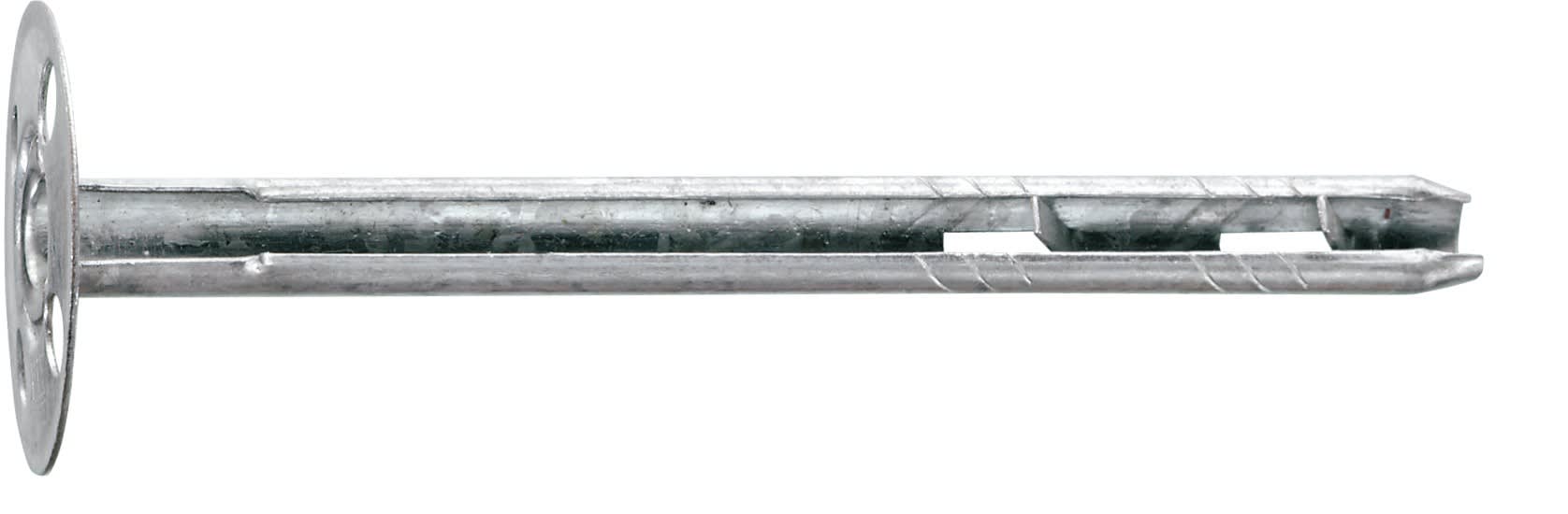 Avantages produit: Cheville à frapper facile à installerConvient pour la fixation d'isolant en sous face de dalle béton Cheville 100% métallique : résistante au feu (certifiée CSTB)Ardillons - offrent une parfaite accroche dans la zone d'expansionDiamètre de tête 35 mmDescription produit: Cheville d'isolation métallique résistante au feu pour matériaux pleinsApplications: Isolation résistante au feu, fibrastyrène en plafond ou au murDiamètre cheville: 8 mmDiamètre de la tête: 35 mmDiamètre de perçage: 8 mmEpaisseur maximale pièce à fixer: 150 mmLongueur cheville: 200 mmProfondeur d’ancrage: 50 mmProfondeur minimale de perçage: 60 mmProfondeur minimale d’ancrage: 50 mm