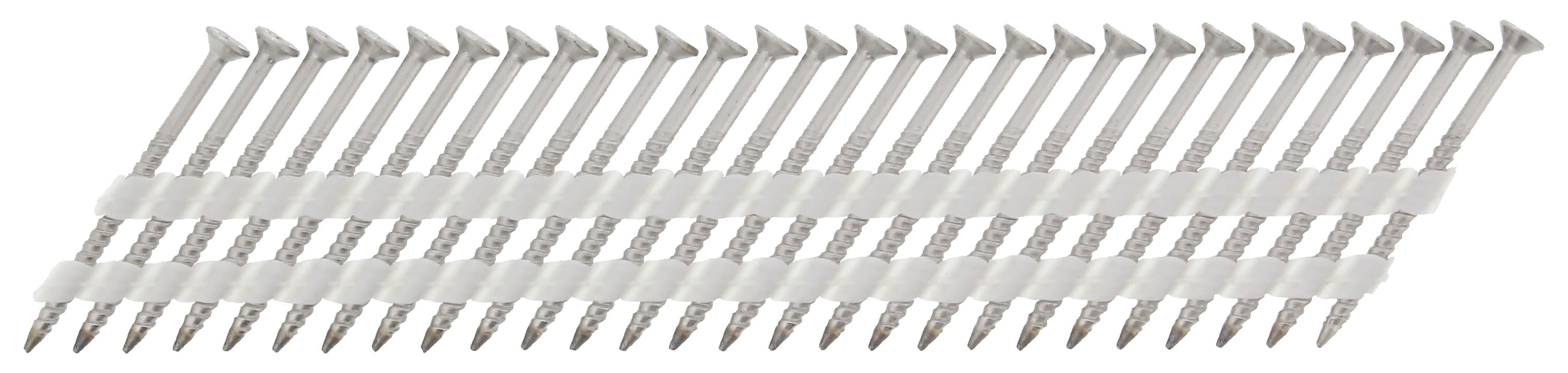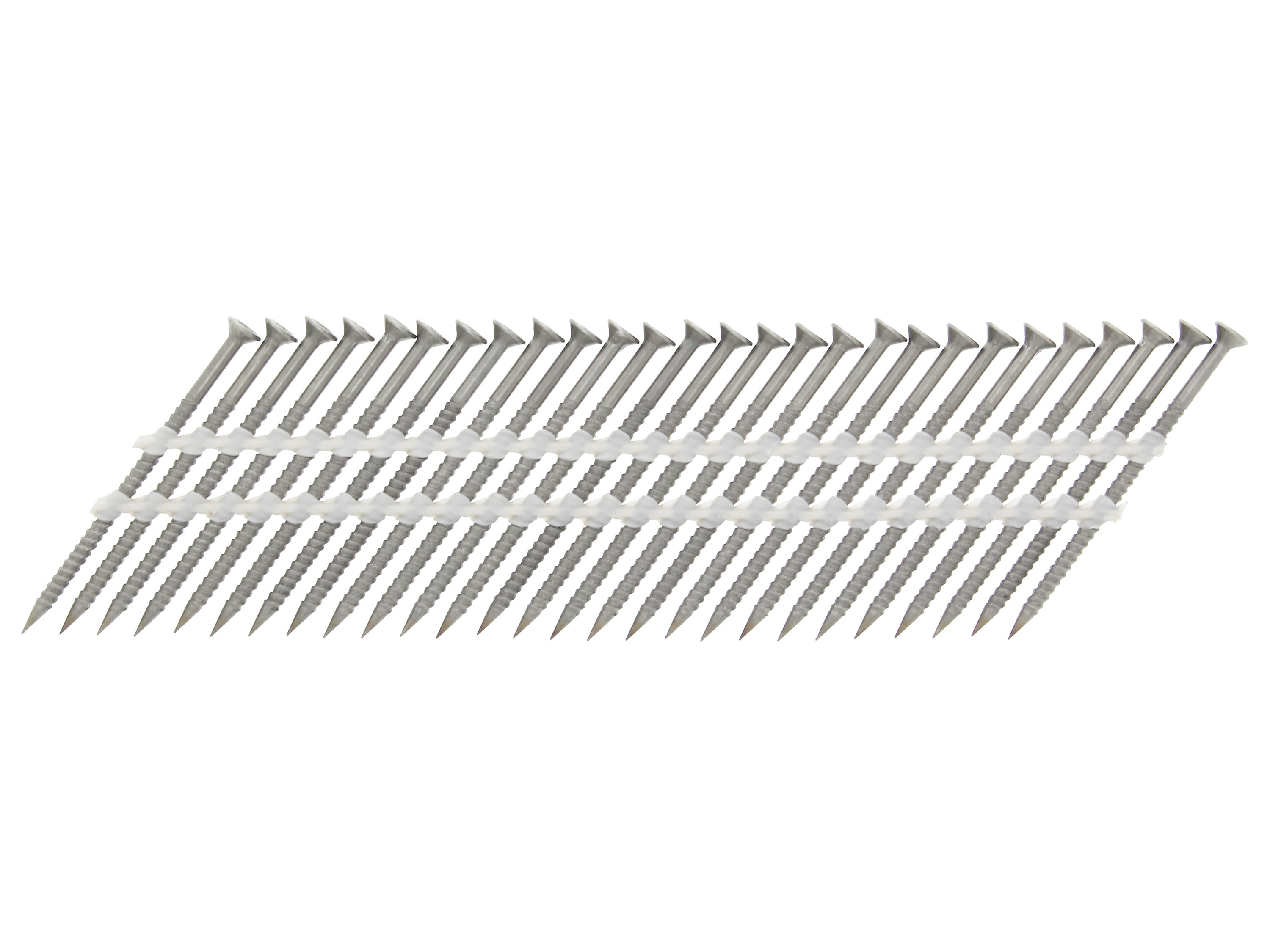Avantages produit: Installation six fois plus rapide par rapport à la vis à bois standard. gain de temps. faibles coûts de matériel et de main-d'œuvreBande plastique résistante et souple : ne casse pas en cas de chuteClous centrés pour un travail sans intermittenceAssemblage résistant à l'eauDisponible en acier inoxydable A2 et en version électro-zinguéeDescription produit: Extérieur. catégorie de service 3Autonomie cartouche de gaz: 1250 tirsDiamètre de la tête: 7 mmDiamètre nominal: 2.8 mmLongueur de fixation (clou/agrafe/pointe): 75 mmNombre de clou par bande/rouleaux: 27 pièces