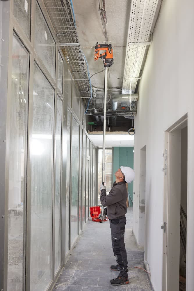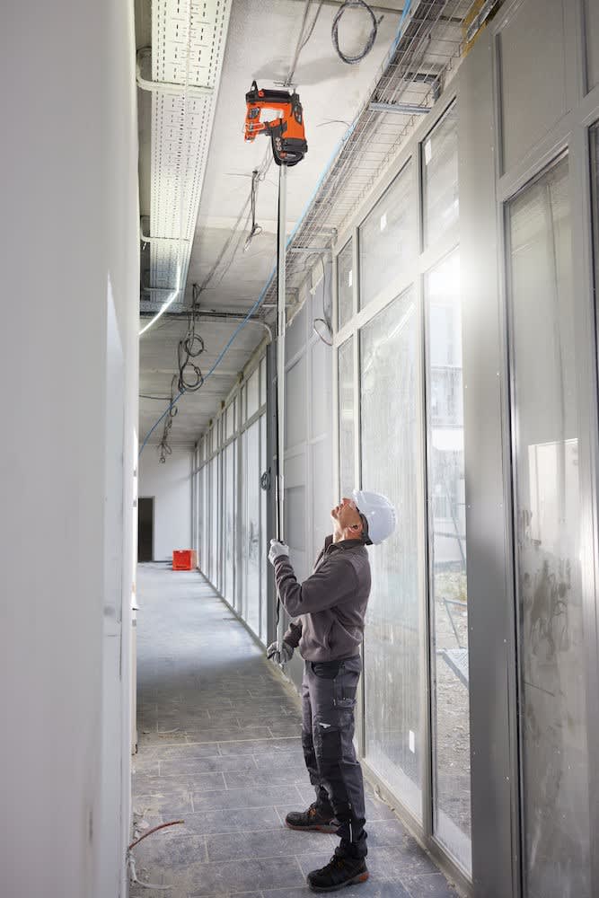 Avantages produit: Mise en oeuvre simplifiée : montage facileConfort maximal : 30% de mise en appui en moins et faible recul par rapport au clouage poudreSécurité et productivité renforcées : position de travail confortable et tir en deux étapesPolyvalence : fixer du sol au plafond jusqu'à 5 mètres de hauteurAlternative idéale aux plates-formes d'accès coûteuses et volumineusesDescription produit: Perche pour Pulsa E pour travailler en hauteurApplications: Accessoires pour tuyaux, câbles et câblagesSuspension plafond