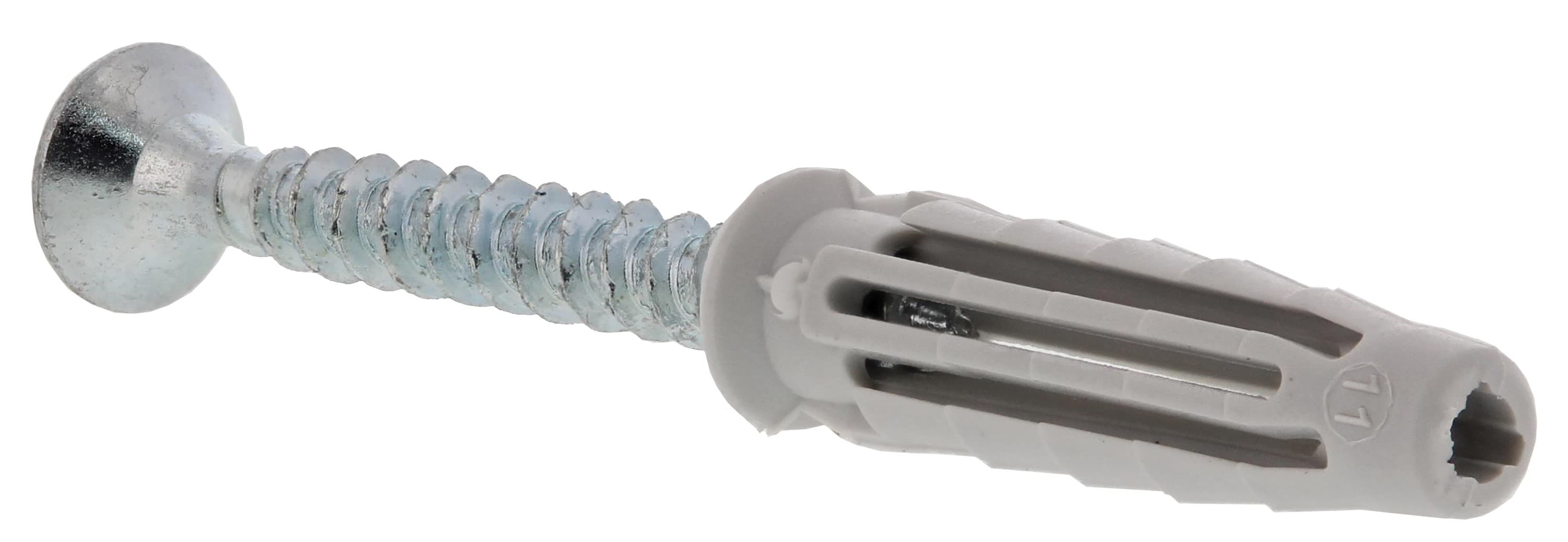 Avantages produit: Cheville multi-matériaux6 zones d'expansion assurant une expansion uniforme dans le matériau supportExpansion immédiate pour éviter la rotation de la chevilleLarge chanfrein d'entrée qui contrôle l'enfoncement de la chevilleOffre une finition à fleur esthétiqueDescription produit: Cheville nylon universelle brevetée pour matériaux pleins et creuxApplications: Petits appareillage électriqueÉquipements de salle de bainÉclairageRayonnageDiamètre cheville: 5 mmDiamètre de perçage: 5 mmDiamètre maximal de vis: 4 mmDiamètre minimal de vis: 3 mmEpaisseur maximale pièce à fixer: 2 mmLongueur cheville: 25 mmProfondeur minimale de perçage: 35 mm