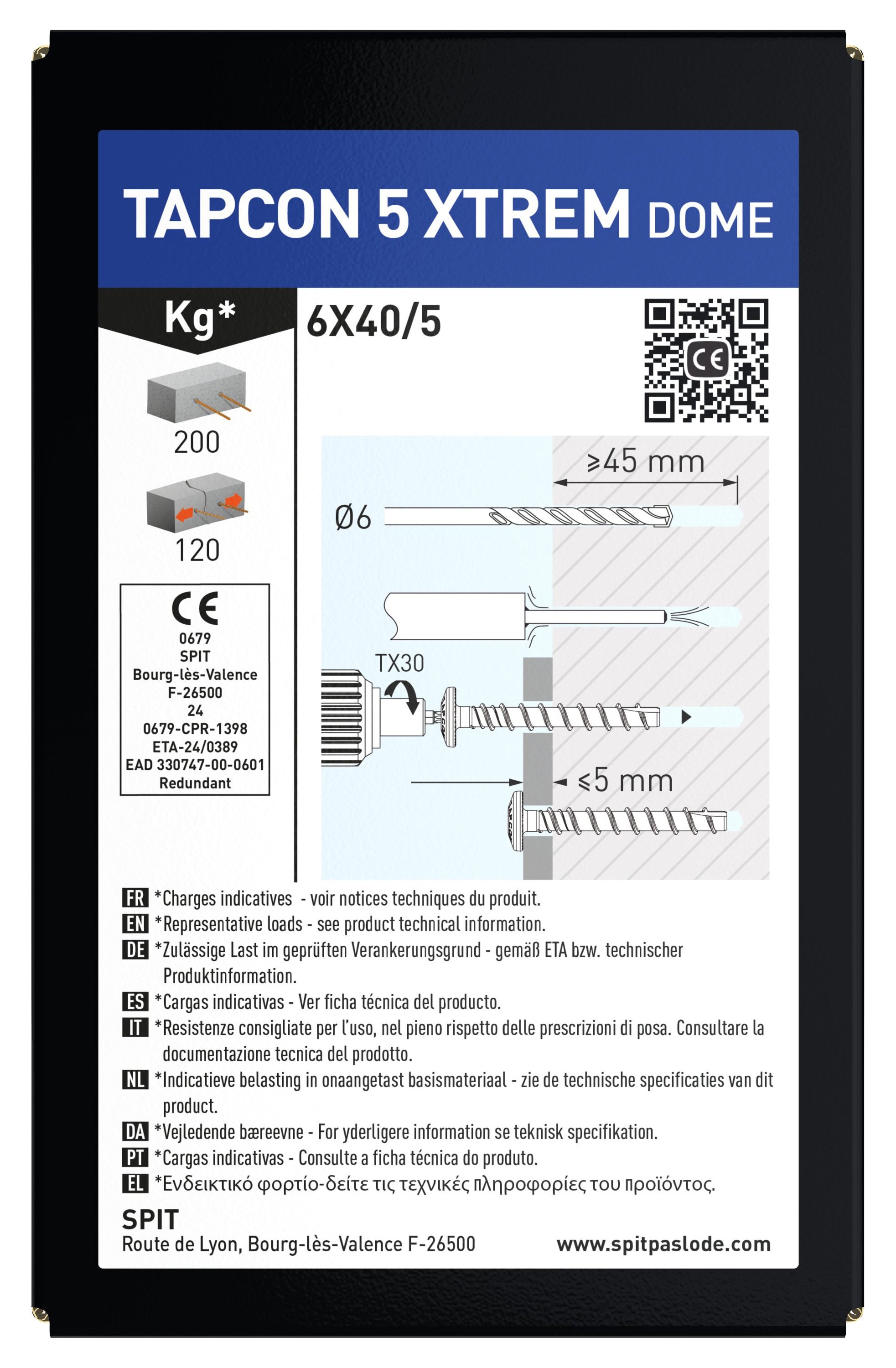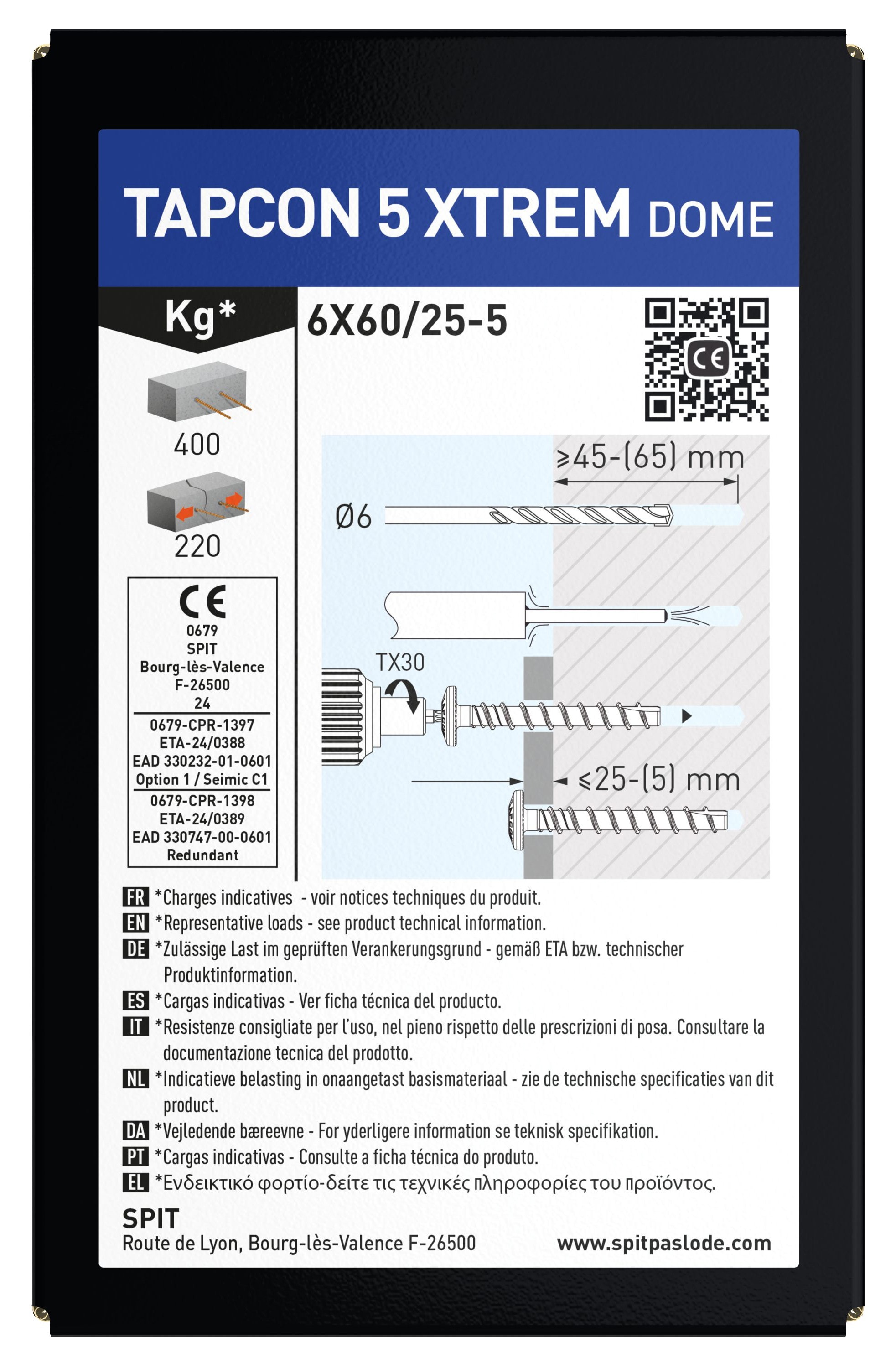 Spit - TAPCON 5 XT DOME 6X60/25-5 tête bombée large - 058681