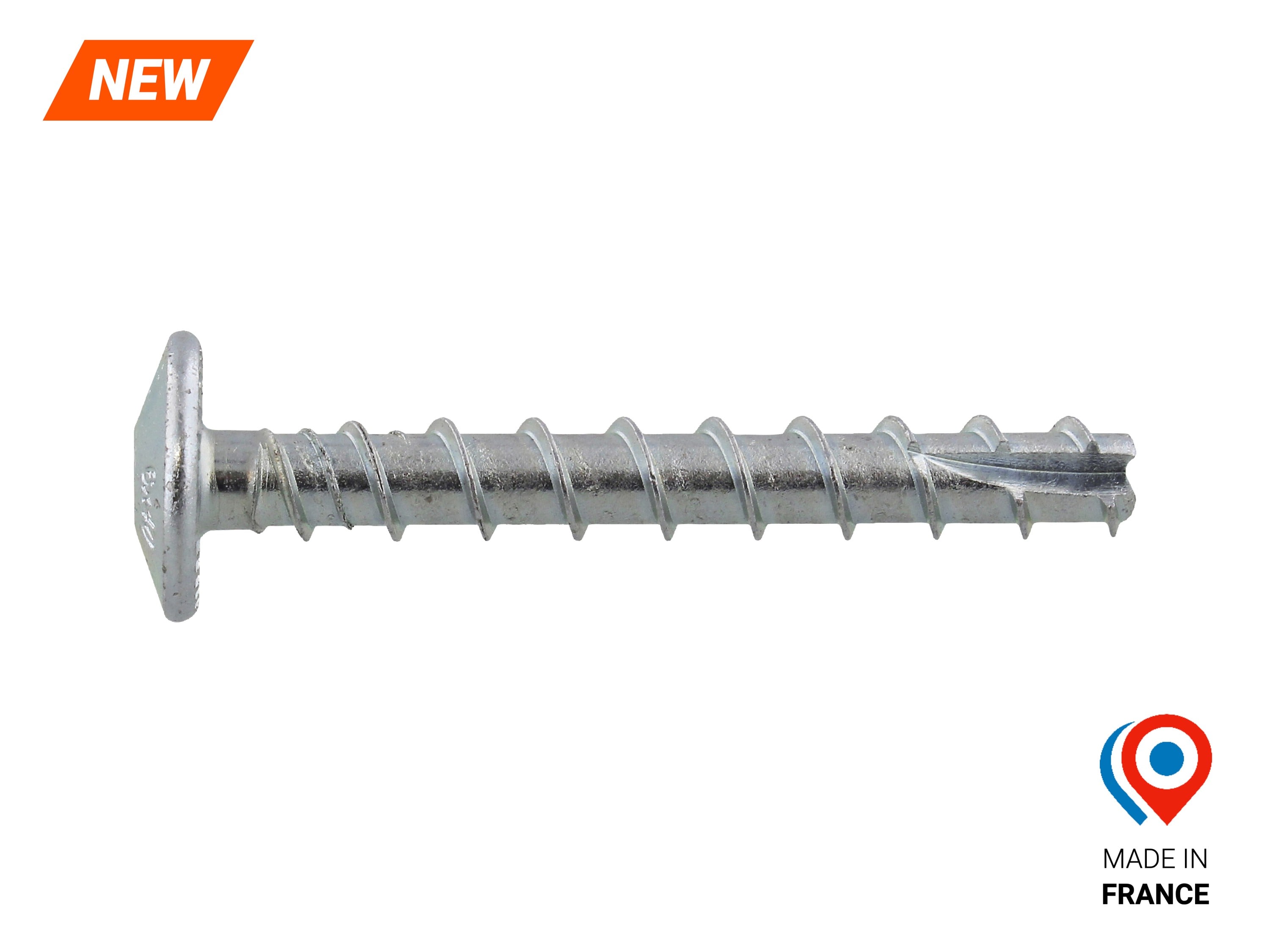 Avantages produit: Tête large (17 mm) pour couvrir un maximum de diamètres de passage.Agrément ETE Option 1 pour béton fissuré et non fissuré.Agrément sismique C1 et homologation incendie.Les crans anti-rotation sous tête limitent le risque de sur-serrage de la vis. Les 2 encoches en bout de vis facilitent l'engagement, quelle que soit la qualité du béton.L'empreinte Torx facilite l'installation entre les rails.Fabrication 100% française, dans nos usines.Description produit: Vis béton avec tête bombée large pour fixation dans béton fissuré et non-fissuré et zone sismiqueApplications: Connecteurs métalliquesEquerres de fenêtreRails de ventilationDiamètre cheville: 6 mmDiamètre de dégagement: 8 mmDiamètre de perçage: 6 mmDistance minimale en bord de dalle: 35 mmDistance minimale entre fixations: 35 mmEpaisseur maximale pièce à fixer: 25 mmEpaisseur minimale du matériau de base: 80 mmLongueur cheville: 60 mmProfondeur maximale d’ancrage: 55 mmProfondeur minimale de perçage: 40 mmProfondeur minimale d’ancrage: 35 mm