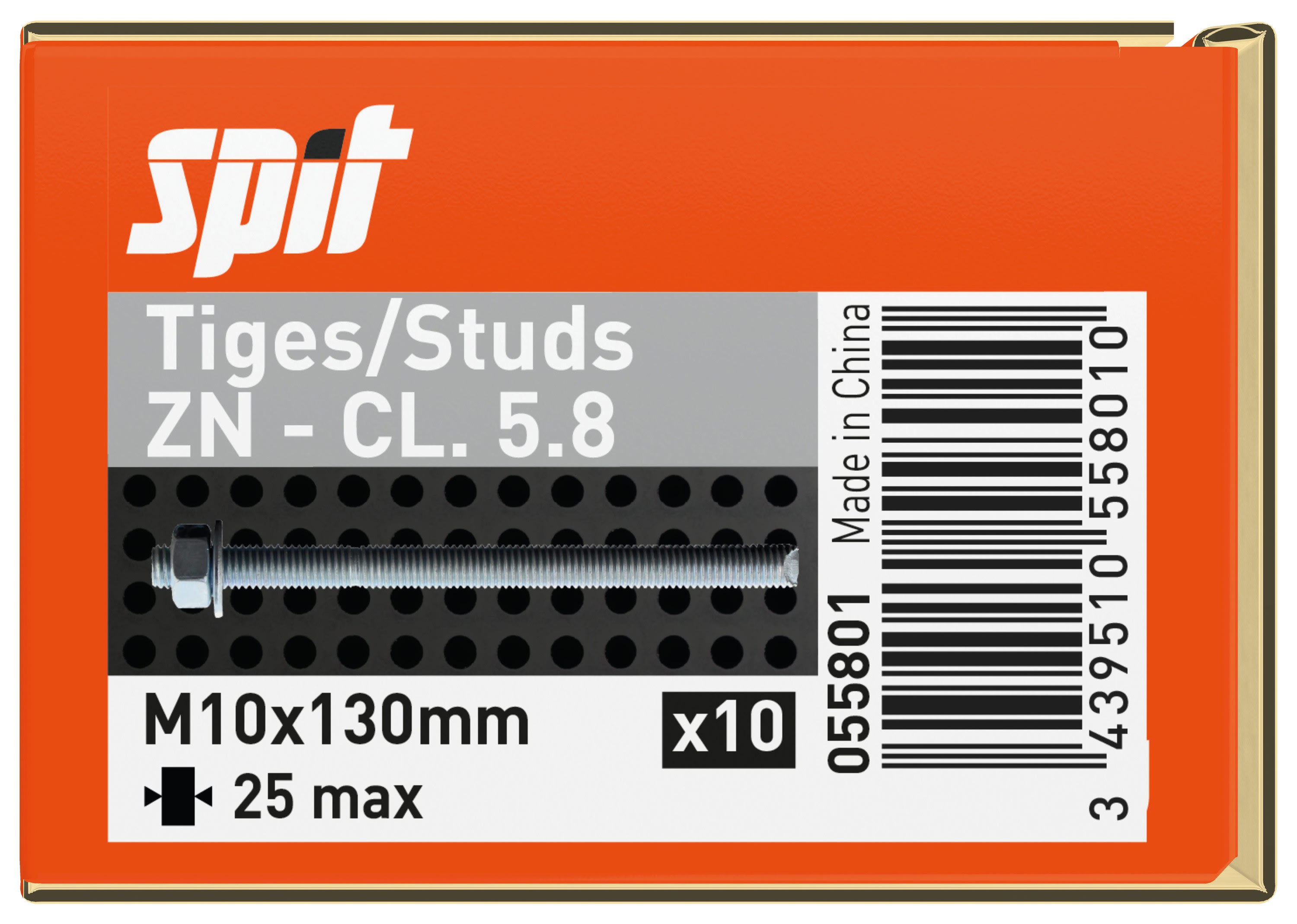 Spit - Tiges filetées standard 5.8 M10X130 - 055801