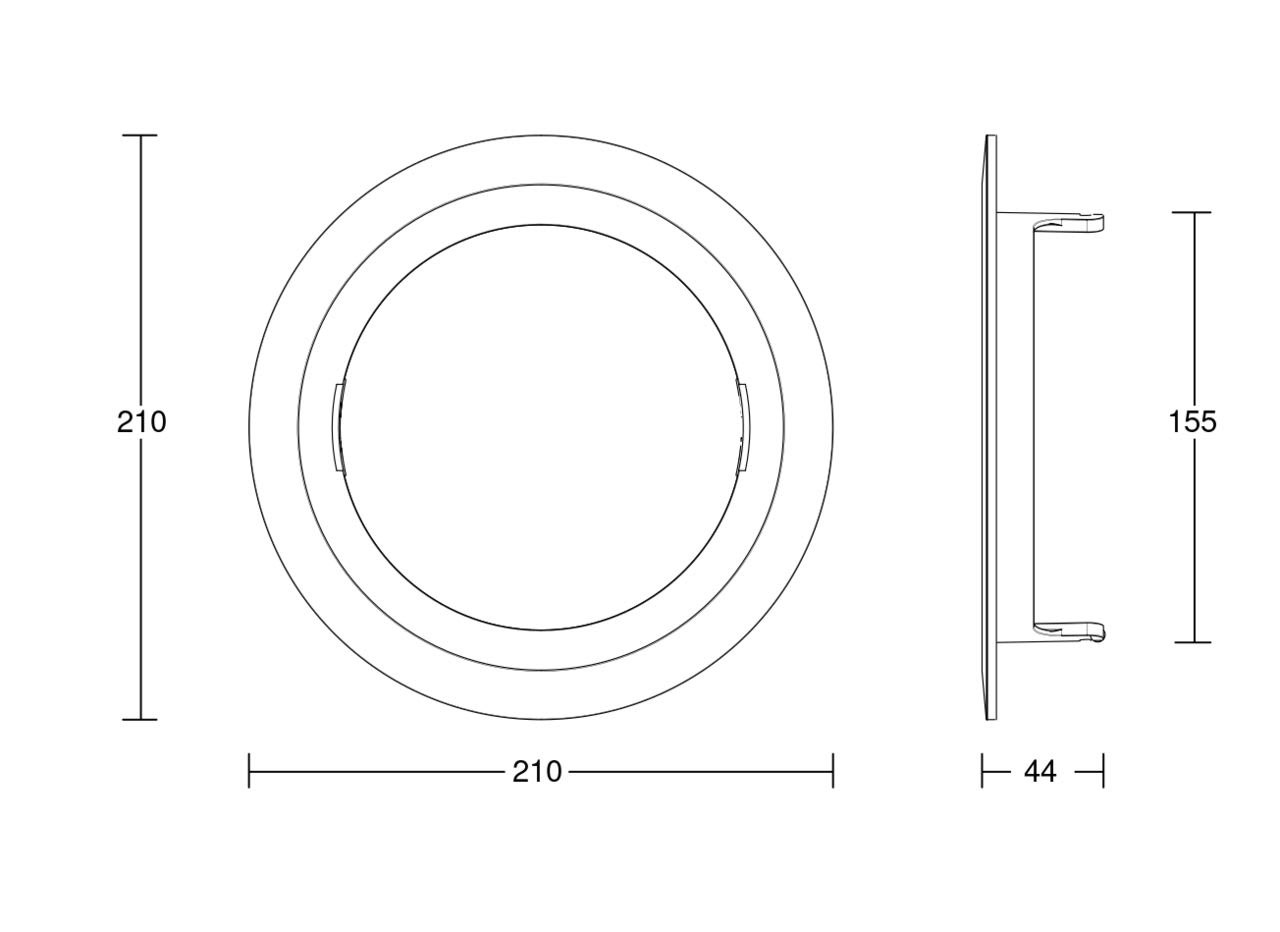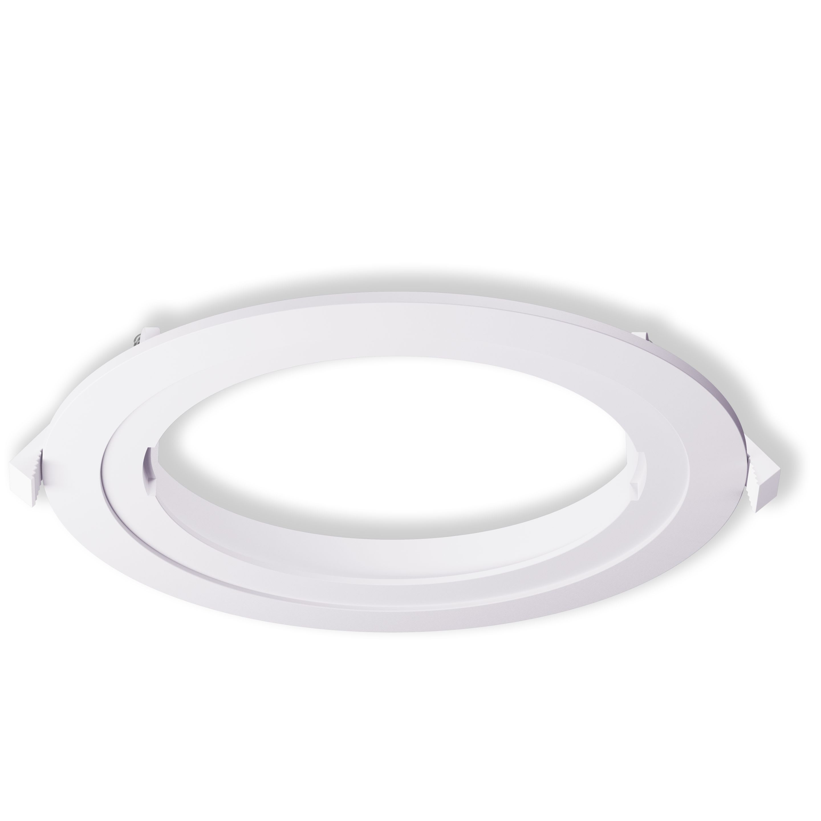 Anneau large. Cache de rénovation pour recouvrir de grandes découpes dans les dalles de plafond. Convient aux luminaires par flux dirigé vers le bas à RS PRO DL 150 SC. Découpe du plafond : ø160-190 mm.