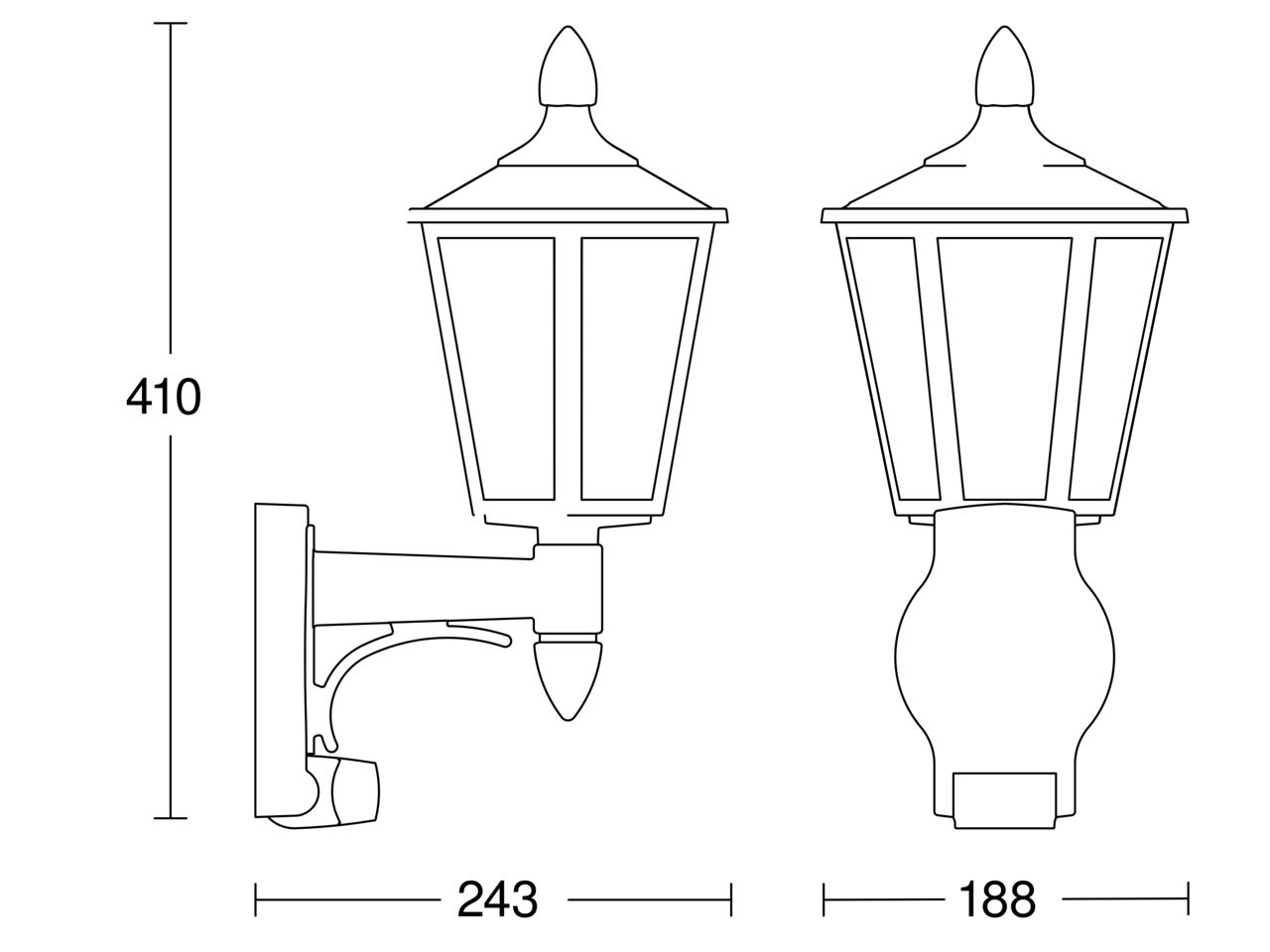 Autrefois, tout était mieux. Nous avons donné un look nostalgique au luminaire à détection L 15 S. À notre époque, les luminaires pour l’extérieur n'allument la lumière que lorsque c'est vraiment nécessaire. Le détecteur reconnaît de manière fiable si quelqu'un pénètre dans sa zone de détection et allume puis éteint de nouveau automatiquement la lumière. Le luminaire réunit la technologie ultramoderne et le design classique et, il est, en plus, nettement efficace au niveau énergétique. Cela est synonyme pour vous de confort, de sécurité et d'économie d'énergie. Cela n'a vraiment rien de comparable avec le passé.