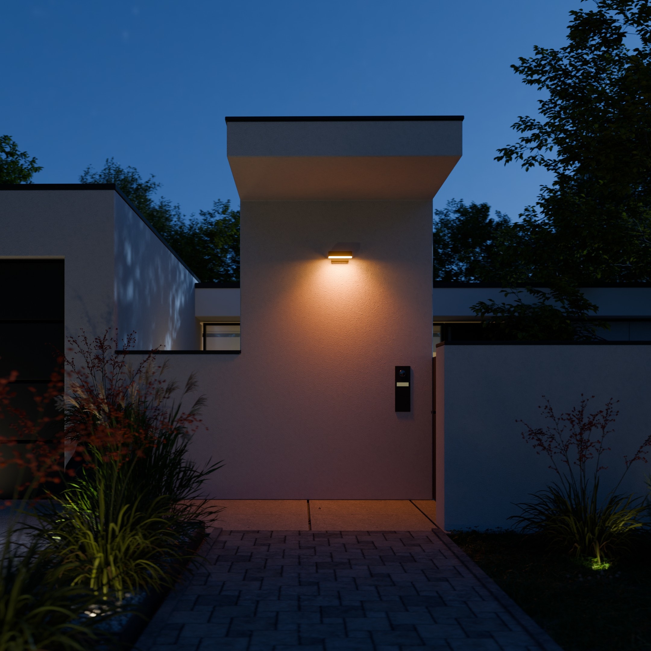 L’éclairage durable dans sa plus belle forme. La L 800 SC bugfriendly associe design moderne, technologie de capteurs intelligente et éclairage durable dans un seul luminaire. Sa lumière ambrée très chaude de 1800 K réduit la pollution lumineuse, attire nettement moins d’insectes et offre un éclairage descendant doux, agréable et sans éblouissement autour de la maison. Le capteur haute fréquence invisible (iHF) détecte les mouvements dans un rayon de 1 à 5 m avec un angle de détection de 160°. Le système d’éclairage LED STEINEL de haute qualité (7,5 W, 466 lm) assure une illumination efficace et des fonctions intelligentes telles que la lumière de base et la lumière principale réglables. Grâce à l’application STEINEL Connect, le luminaire peut être mis en réseau sans fil, configuré et contrôlé facilement. La création de groupes, de scènes et de réglages individuels se fait en quelques gestes – idéal pour les espaces extérieurs modernes et connectés. Fabriquée à partir de matériaux durables et de grande qualité, la L 800 SC bugfriendly crée un accent élégant sur toute façade – et démontre comment éclairage extérieur design et durabilité se complètent parfaitement.