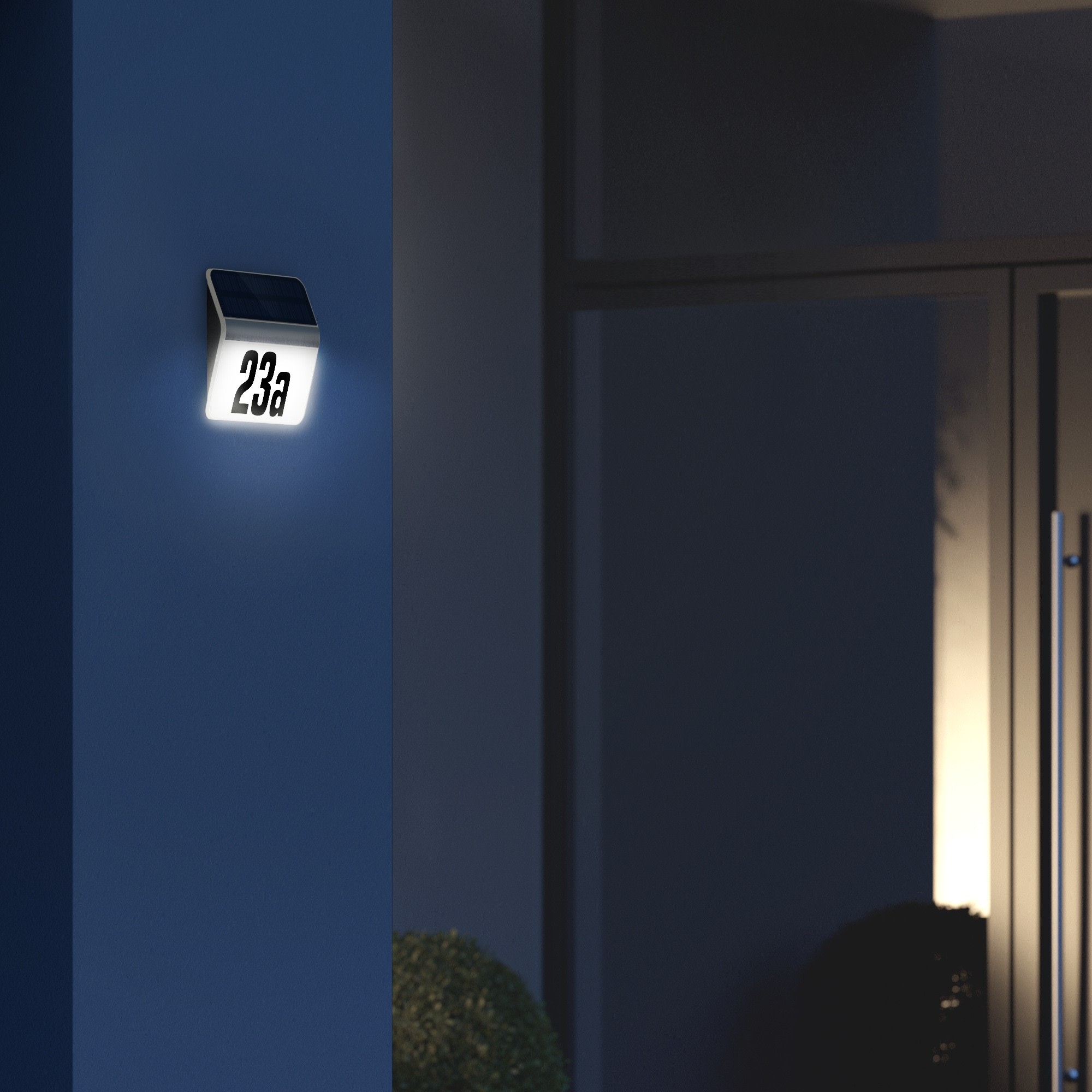 La formule d'avenir pour l'éclairage des numéros de maison. La solution la plus avancée, la plus efficace et la plus belle afin de mettre en valeur votre entrée avec un numéro de maison automatiquement éclairé. Grâce à l'interrupteur crépusculaire intégré, le luminaire s'allume lorsque la nuit tombe et s'éteint dès qu'il fait jour.