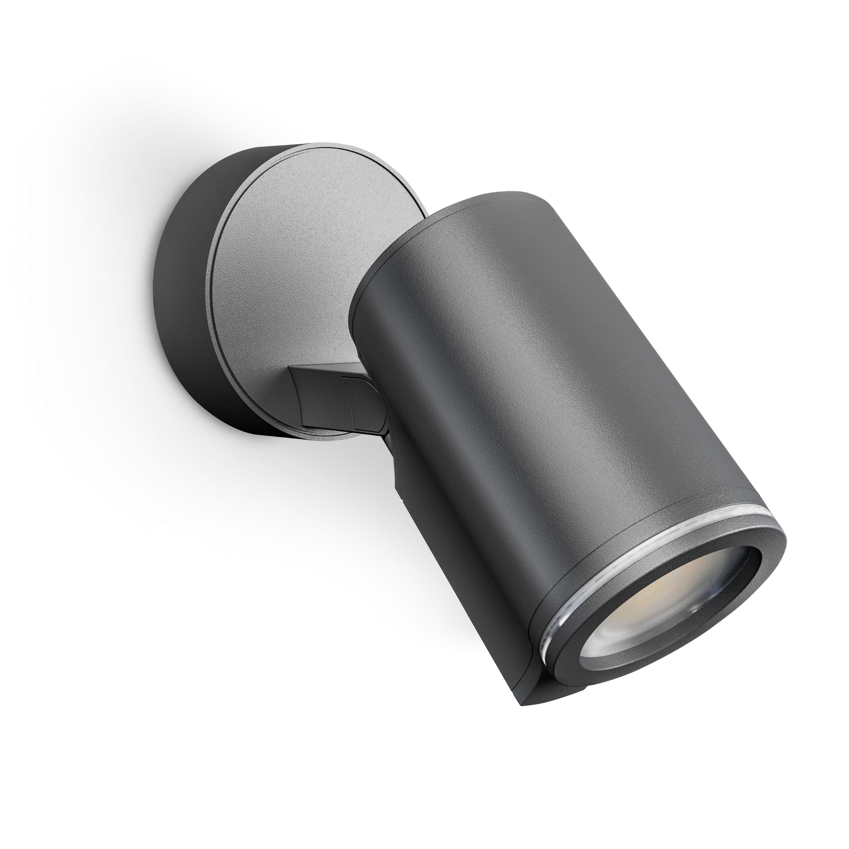 Détection parfaite. Un éclairage précis. La série d'appliques « Spot ONE » convainc par son design aux lignes sobres et épurées ainsi que par ses détails stylés. Il est possible de faire pivoter facilement les têtes robustes des appliques à 180° à l'horizontale ou à 90° à la verticale, de les orienter aisément en fonction des besoins et leur puissance de 512 lm diffusant une lumière chaude de 3000 K garantit un éclairage parfait tout autour de la maison. La série d'appliques attrayantes existe en trois versions: la version « Spot ONE S » classique équipée d'un détecteur de mouvement infrarouge permettant une détection à 90° avec une portée de 10 m. La version « Spot ONE SC » est équipée du même détecteur, mais se distingue, en plus, par la facilité de son réglage sans fil, de sa mise en réseau et de la commande des fonctions via Bluetooth et depuis une application. Et la version « Spot ONE » auxiliaire sans détection. La source LED interchangeable à culot GU10 est également fournie avec chacun des appareils.