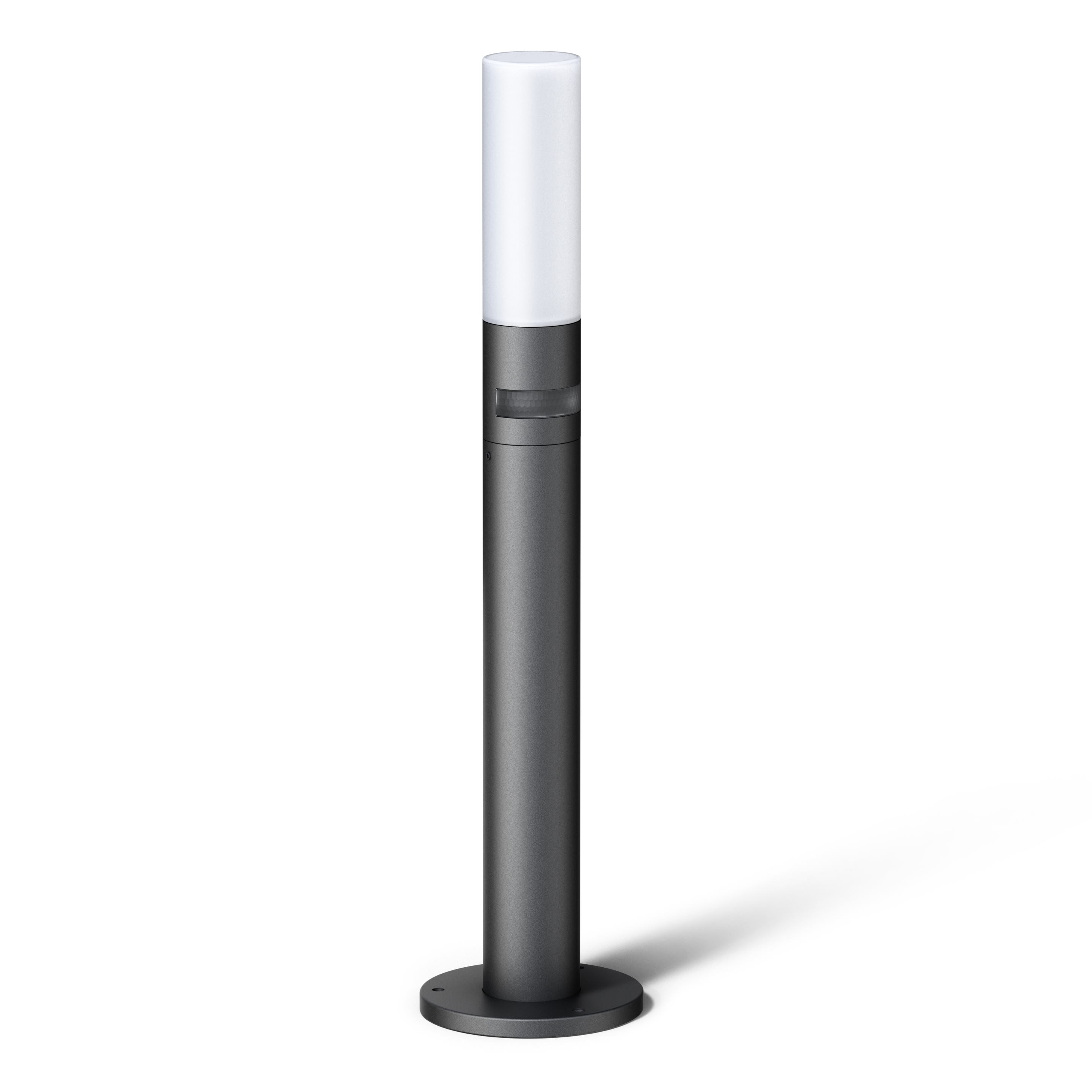 Une élégance sobre pour les chemins et les voies d'accès. Le luminaire sur pied et d'allée GL 65 S, d'une hauteur de 77 cm, séduit par son design impressionnant et sans fioritures. Cette lampe à LED attrayante, dotée d'un capteur infrarouge de 180° et d'un rayon de détection de 8 m, se présente avec un socle de couleur anthracite en aluminium de haute qualité et un corps en verre opale pour une répartition uniforme de la lumière. Il peut être utilisé aussi bien comme solution autonome attrayante que dans le cadre d'une interaction optique avec d'autres produits de la famille L 600 de STEINEL. En combinaison avec l'applique L 605 et la L 620 CAM, il en résulte une image d'ensemble harmonieuse tout autour de votre maison - du chemin à l'entrée de la maison en passant par la façade. Le luminaire est équipé de la fonction pratique Nightmatic et permet, sur demande, un éclairage continu fiable du soir à l'aube. Grâce à son corps en verre interchangeable, le GL 65 S fait également bonne figure en matière de durabilité. L'espace de raccordement généreux garantit en outre un montage confortable. Le temps de poursuite est réglable - de 5 secondes à 15 minutes. En outre, le GL 65 S offre une fonction d'éclairage de base et un allumage en douceur. De plus, avec 575 lm pour seulement 8,7 W, ce luminaire est très économique. Le lampadaire moderne est également disponible sans détecteur.