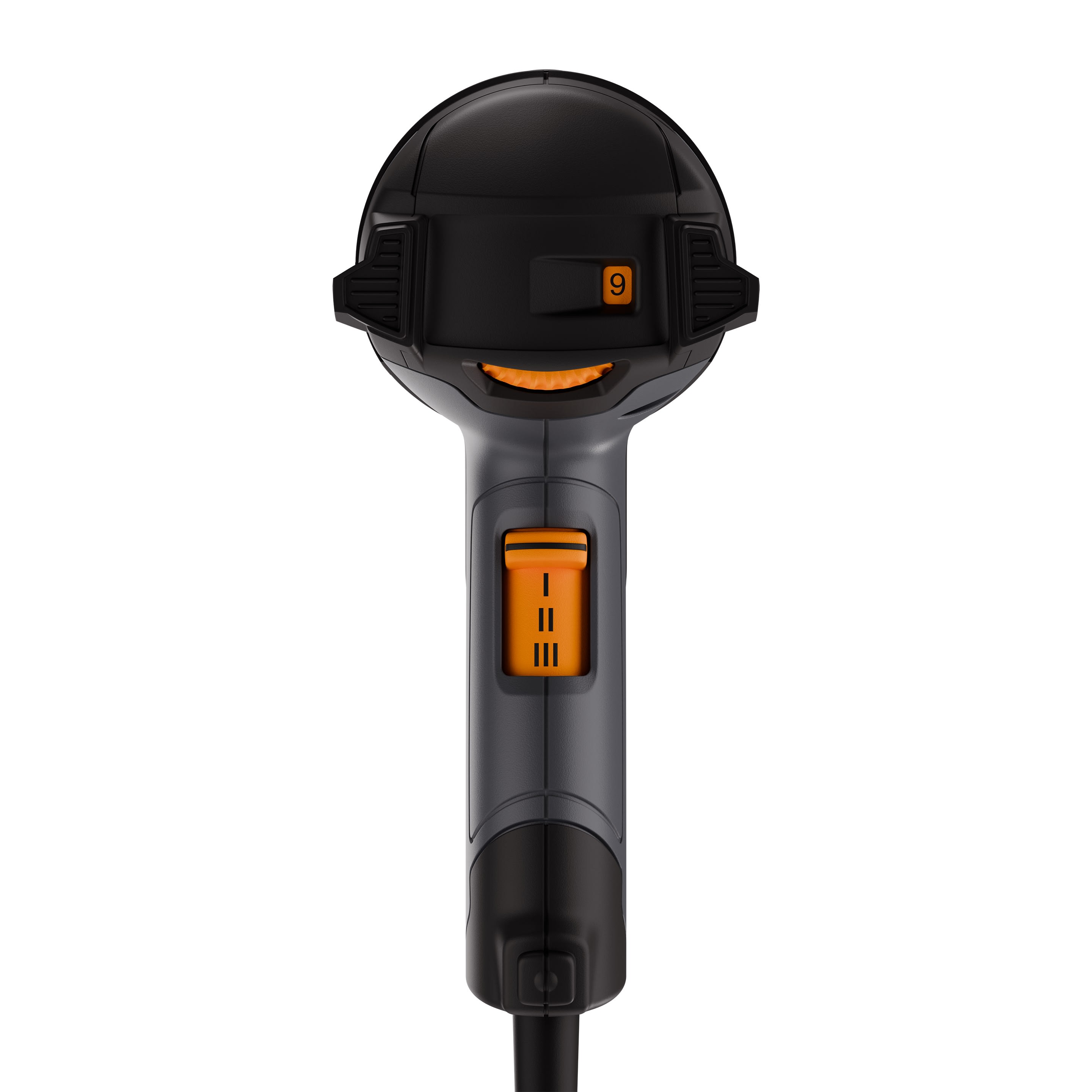 Puissant. Précis. Professionnel. Pour un travail intensif sans fatigue. Le puissant appareil polyvalent HM 2120 E facilite le travail à l'air chaud dans l'atelier et sur le chantier. Ceci est assuré non seulement par le moteur puissant, mais aussi par l'ergonomie optimisée et l'utilisation pratique d'une seule main. Cela permet de passer de nombreuses heures sans fatigue à rétracter, former, souder ou desserrer, selon la buse utilisée. La température peut être réglée manuellement en 9 étapes, de 80 à 630 °C, et le volume d'air peut être modifié en 3 étapes, de 150 à 500 l/min. Tout cela fait du HeatMatic 2120 E l'appareil d'entrée de gamme idéal pour les vrais professionnels.