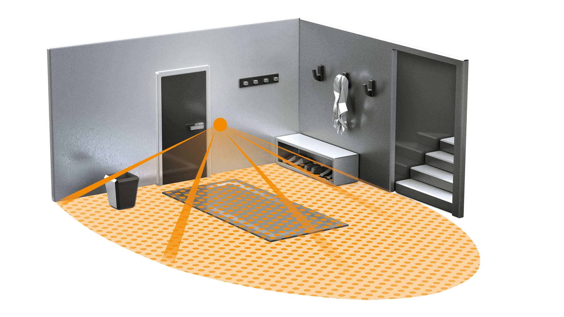 Il vous éclaire. Lorsque vous n'avez pas les mains libres. Vous revenez des courses et déchargez des caisses de boissons de votre voiture. Chargé(e) comme un mulet, vous amenez vos achats dans le garde-manger. Le détecteur de mouvement encastré IR 180 AP easy allume et éteint automatiquement et sans contact la lumière dès que vous quittez la pièce. Cet interrupteur intelligent est particulièrement adapté aux entrées, aux cuisines, aux WC d'appoint et à d'autres pièces de passage. Son montage est d'ailleurs extrêmement intelligent. Il vous suffit de remplacer vos interrupteurs classiques. Il fonctionne toujours peu importe s'il s'agit d'installations bifilaires ou trifilaires. Allume toutes les sources lumineuses.