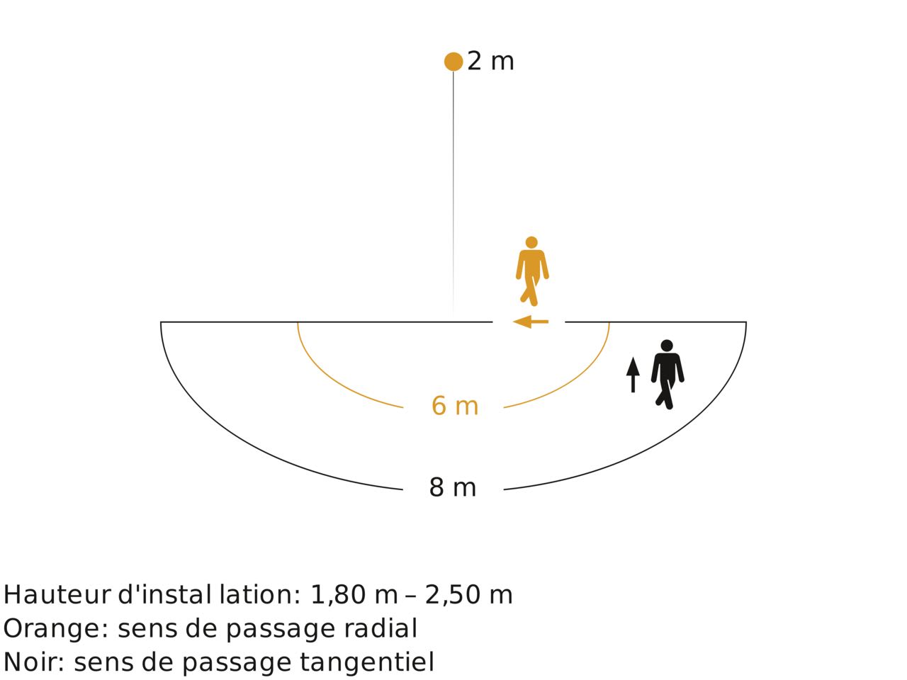 La technique fait la différence. Le détecteur de mouvement innovant met enfin fin à la limitation de la zone de détection, qui prend beaucoup de temps. Et élève la technique de détection infrarouge à un tout nouveau niveau en tant que capteur à 180 degrés réglable numériquement. Grâce à la combinaison de cinq pyrodétecteurs et d'une technologie de miroir innovante, nous avons réussi à rapprocher nettement la détection radiale de la détection tangentielle. Réglage via Smartphone