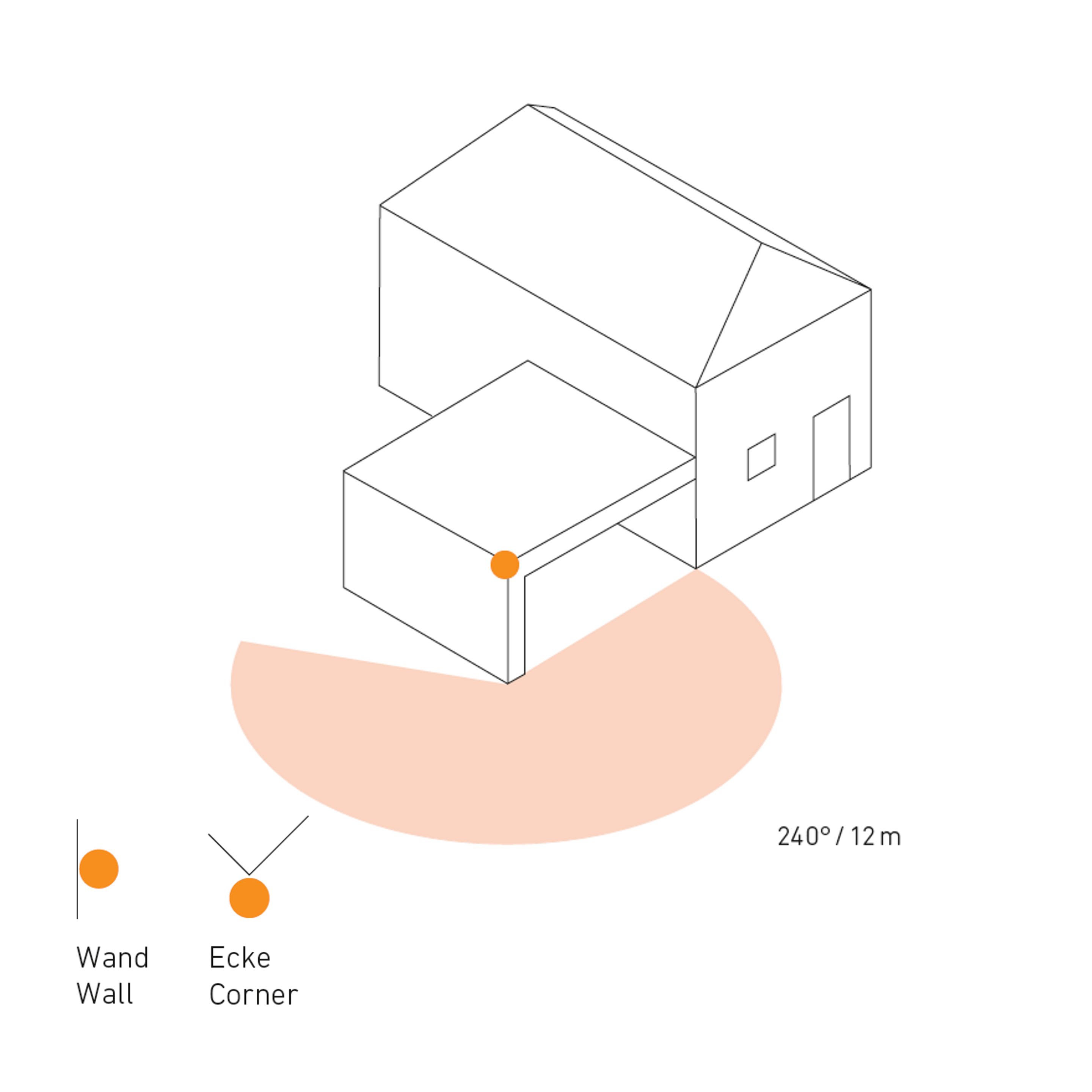 Vous pourrez dormir en toute tranquillité. La nuit ou lorsque la nuit tombe, vous pouvez vous fier absolument au détecteur de mouvement IS 240 DUO. Nous avons équipé ce détecteur de mouvement avec deux détecteurs infrarouges afin qu'il puisse surveiller des surfaces étendues pour vous. Et, si vous montez le détecteur de mouvement dans un coin externe, vous pouvez profiter d'un avantage supplémentaire : la surveillance fiable et sans faille d'une zone située entre deux murs de maison. À quoi bon monter deux détecteurs lorsqu'un seul appareil peut faire le travail de deux ? Le support mural d'angle est fourni avec l'appareil.