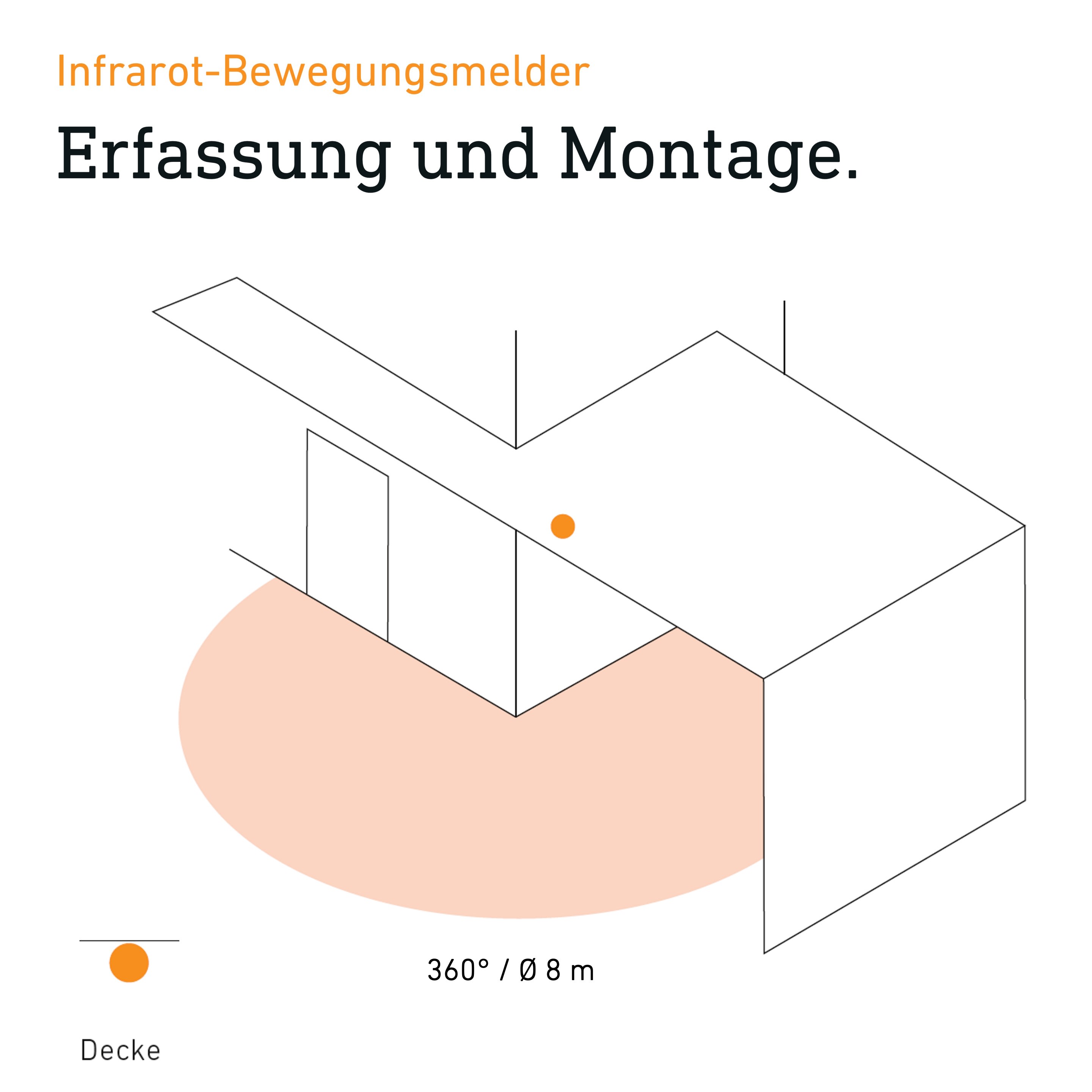 STEINEL à l'intérieur. La technologie intelligente à intégrer. Le détecteur IR parfait à intégrer dans les avant-toits et les faux plafonds. L'IS 360-1 DE se caractérise par une portée pouvant atteindre 4 m et se distingue par une détection sur 360°. Il est possible de régler la zone de détection en utilisant les caches enfichables. L'IS 360-1 DE est disponible en blanc et noir.