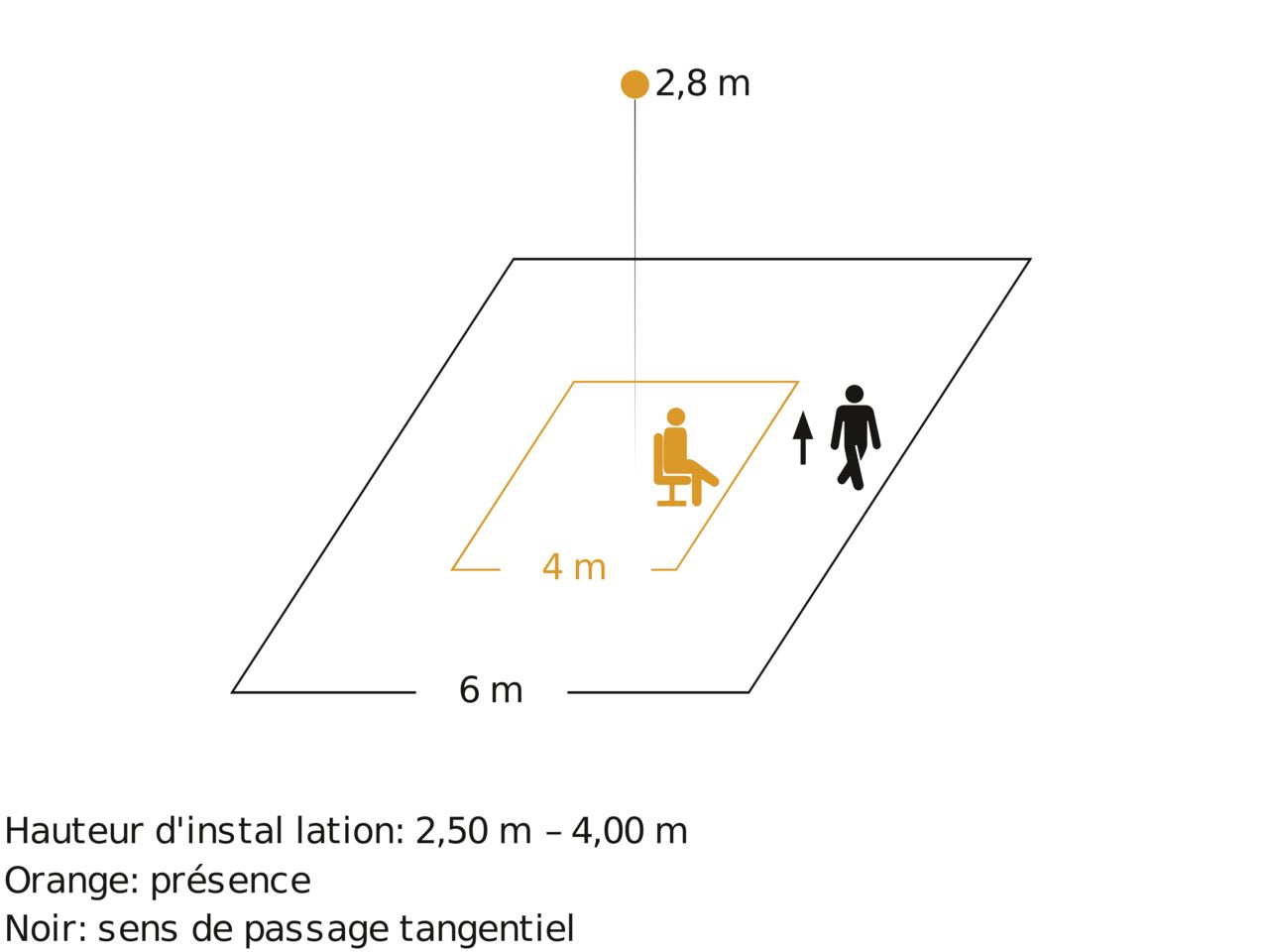 portée de présence max.: