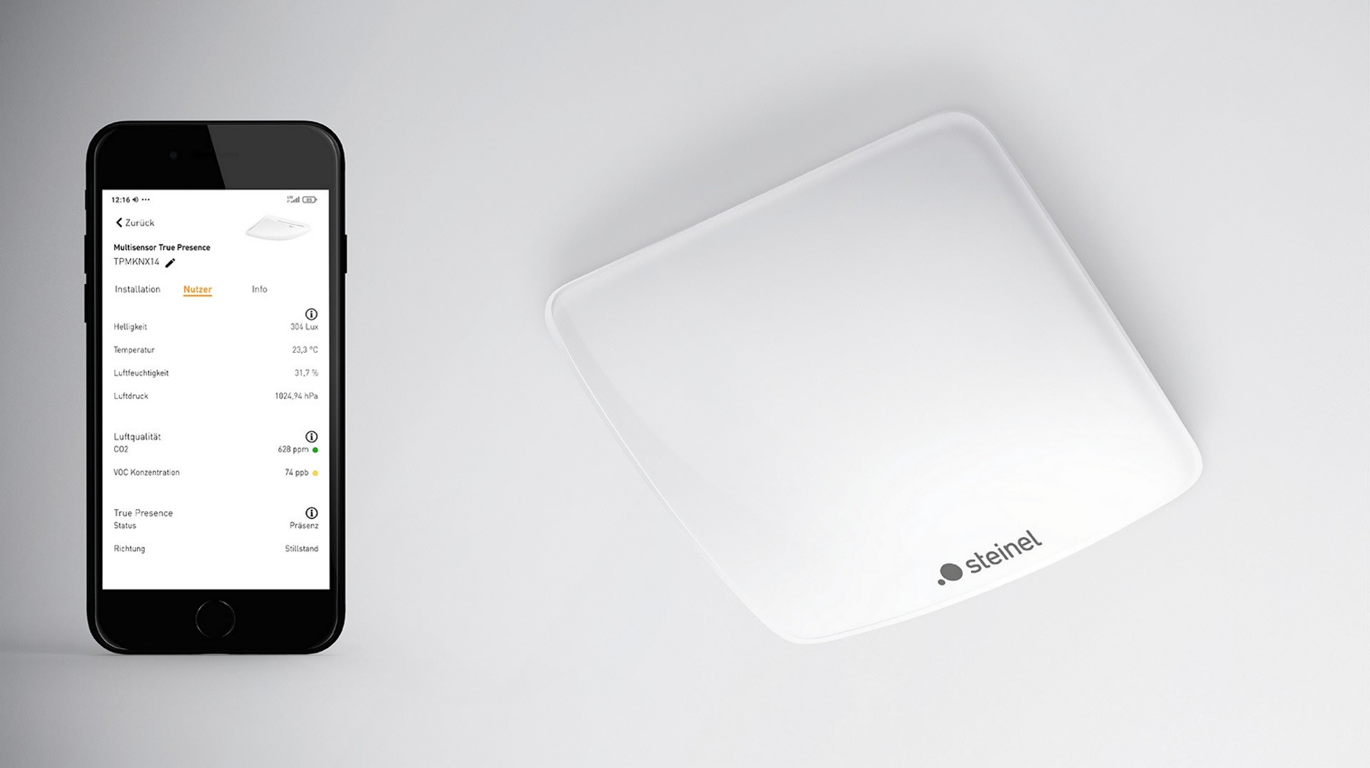 Il sait quand l’air est sain. Le détecteur de présence le plus précis de tous les temps devient l’organe sensoriel par excellence. La détection réelle de la présence humaine est combinée avec des mesures de la luminosité, de la température ambiante, de l’humidité de l’air, de la pression atmosphérique, des composés organiques volatiles (COV) et de la teneur en CO2. Des informations qui aident à faire progresser à long terme la numérisation de la domotique. Pour la première fois, le multi-capteur True Presence® Aerosol KNX peut aussi afficher un risque d’infection potentiel sous forme d’informations communiquées au système KNX. Un investissement dans l’intelligence d’un bâtiment, pour le confort de l’être humain et la rentabilité dans l’entreprise. Toutes les bonnes choses viennent d’en haut - des informations numériques précises pour la domotique moderne.