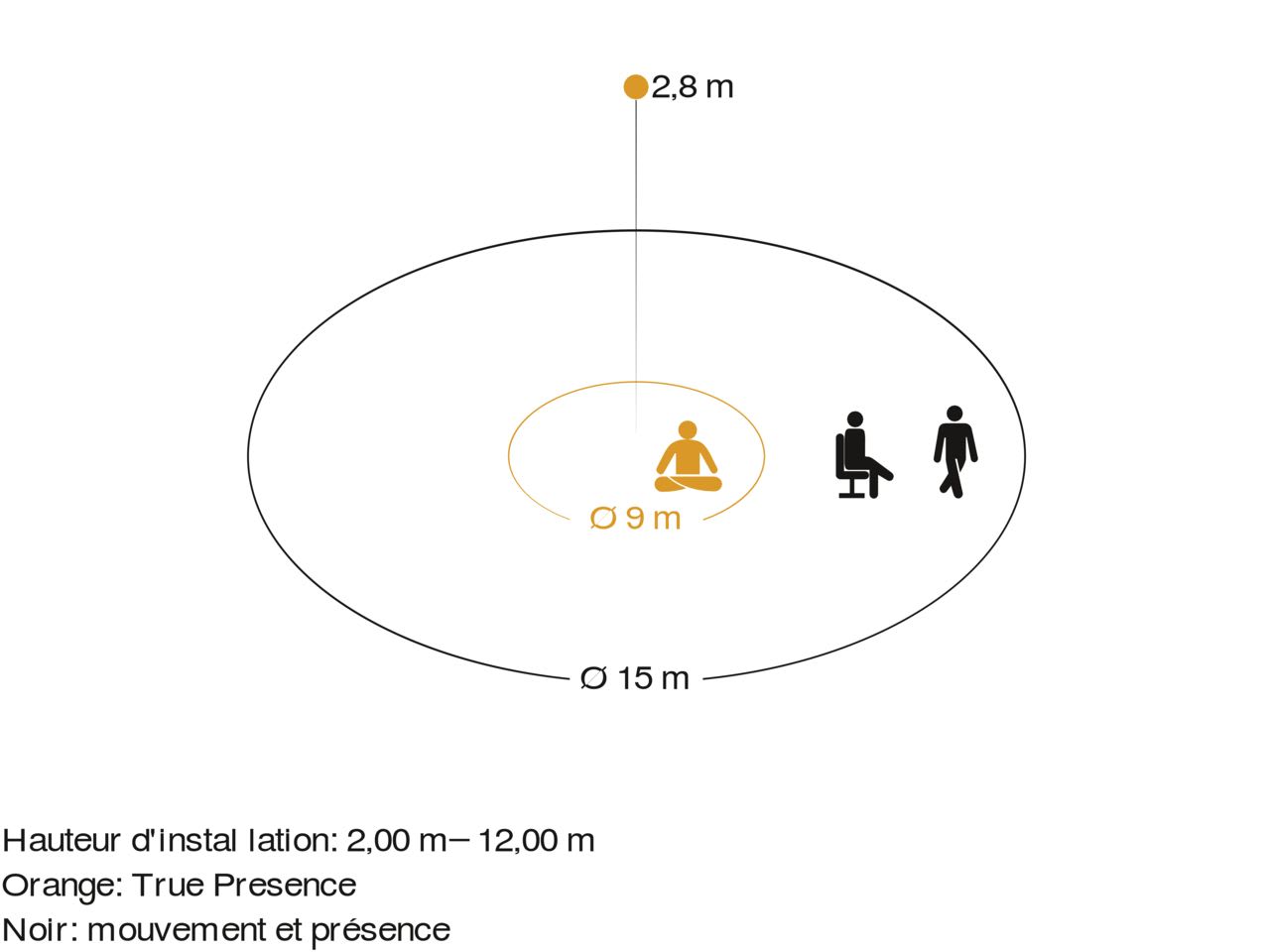 portée de présence max.: