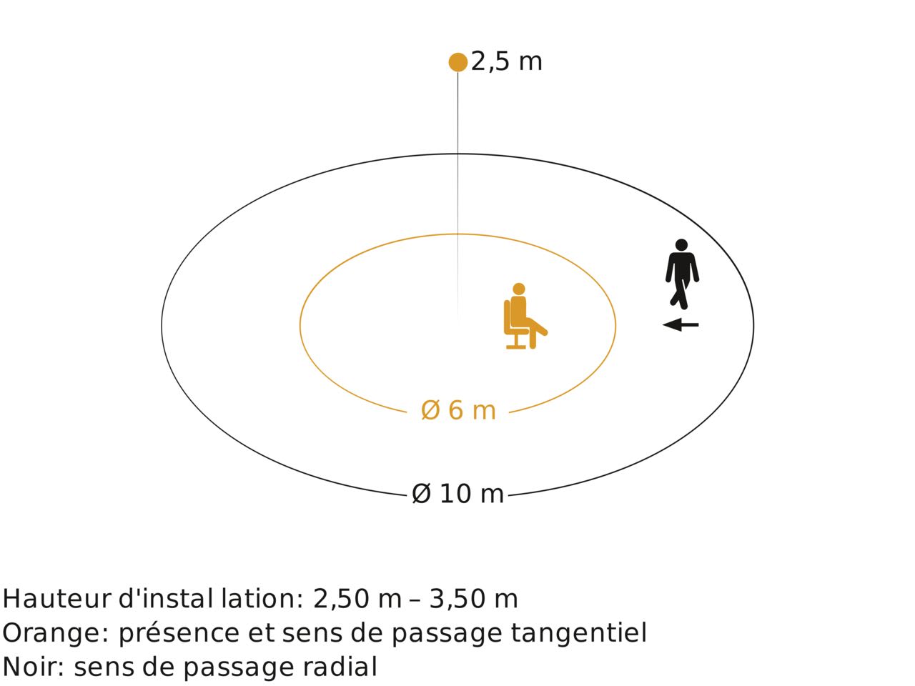 Une détection sans obstacle. Une surveillance dans les moindres recoins et une sensibilité remarquable. Une architecture avec de nombreux recoins, des cloisons ou d'autres obstacles présente des difficultés insurmontables à de nombreux détecteurs. La détection de la présence humaine dynamique idéale du modèle US 360 fonctionne, au contraire, de manière absolument fiable, même derrière des objets. Sur 6 x 6 mètres. Et cela même à des températures extrêmes. Les ondes ultrasonores qui remplissent une pièce le permettent.