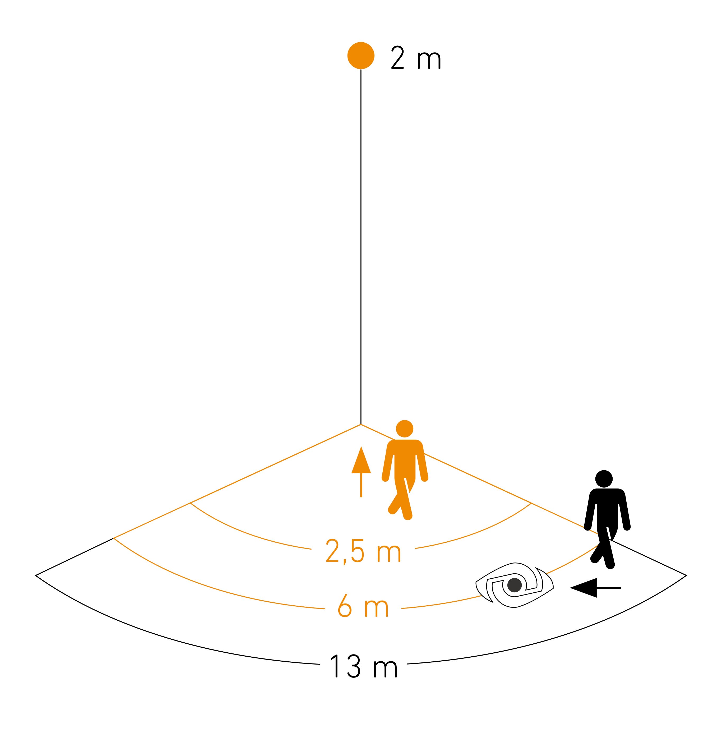 Idéal pour la détection extérieure avec un angle de 130°. Portée de détection de face augmentée en orientant l'Eagle Eye. Paramètrage facile via Bluetooth, mise en réseau de luminaires Steinel Bluetooth sans câble entre eux.