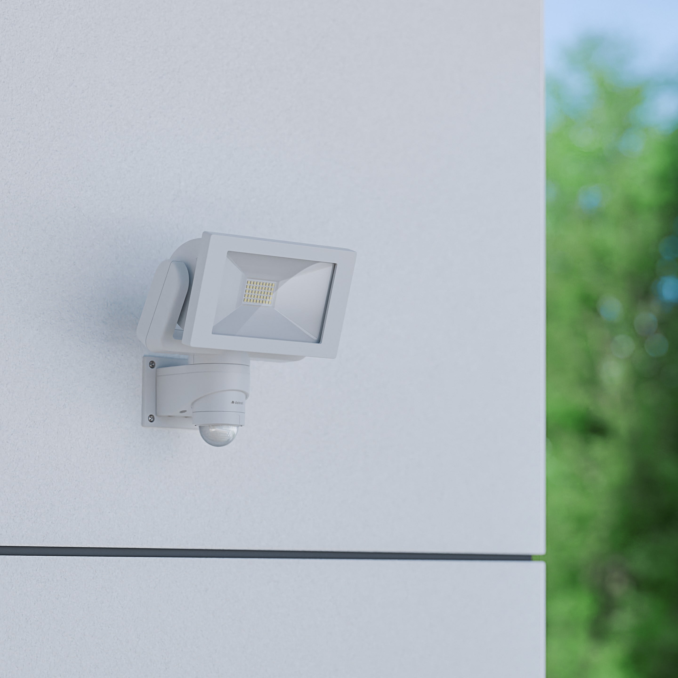 Un éclairage puissant à grande échelle. Le projecteur LED à détection LS 300 S avec une température de couleur agréable de 4000 K et un flux lumineux de 2704 lm fait de votre entrée pour les voitures un terrain de football parfaitement éclairé même la nuit. Avec son réflecteur en céramique, il met en valeur les points qui accrochent les regards, vous montre le chemin vers votre porte d'entrée et a un effet dissuasif sur les invités indésirables. Le projecteur ne consomme que 29,5 W. Nous avons mis spécialement au point le puissant projecteur vigilant pour satisfaire aux exigences posées par les façades des maisons, les voies d'accès et les entrées secondaires. C'est naturellement à vous de définir la durée d'éclairage et le seuil de crépuscularité auquel doit réagir le détecteur. Le robuste spot LED avec tête de spot en aluminium est disponible en noir et blanc.
