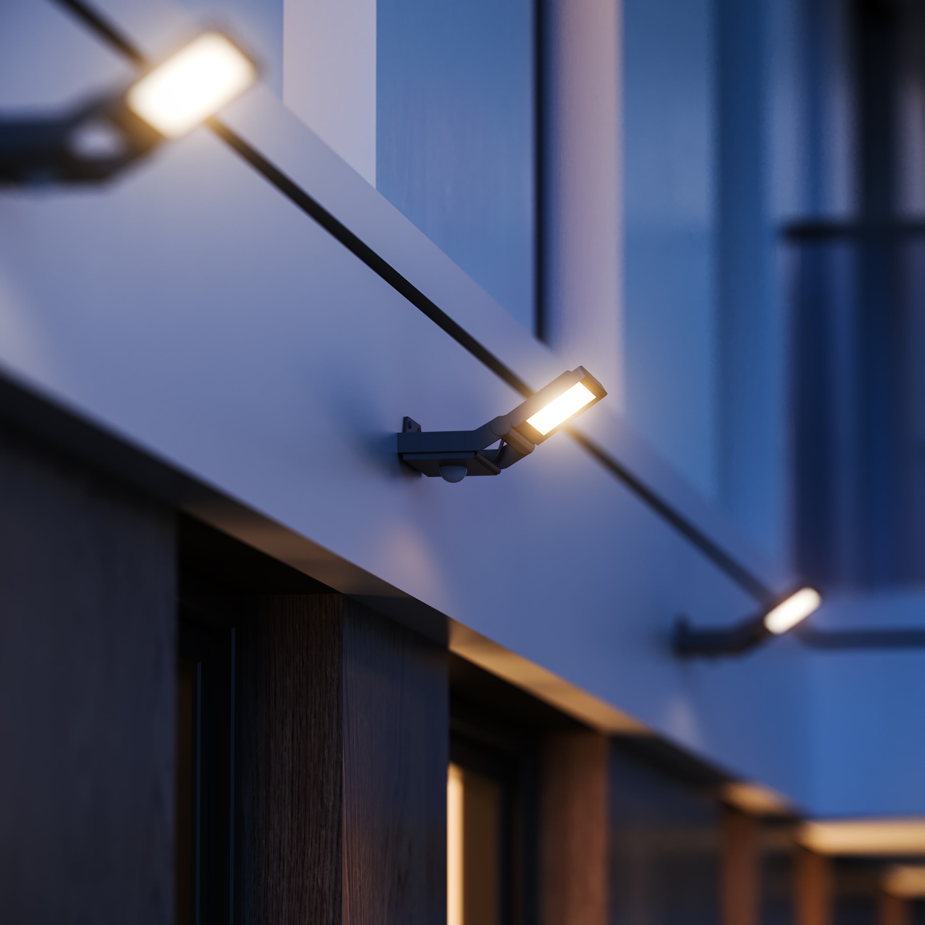 Les modèles XLED PRO garantissant un éclairage uniforme des grands espaces extérieurs. Hauteur de pose et de détection jusqu'à 6 mètres. Fonction de balisage et réglages précis. Réglage via télécommande fournie ou via Smart remote (non fourni).